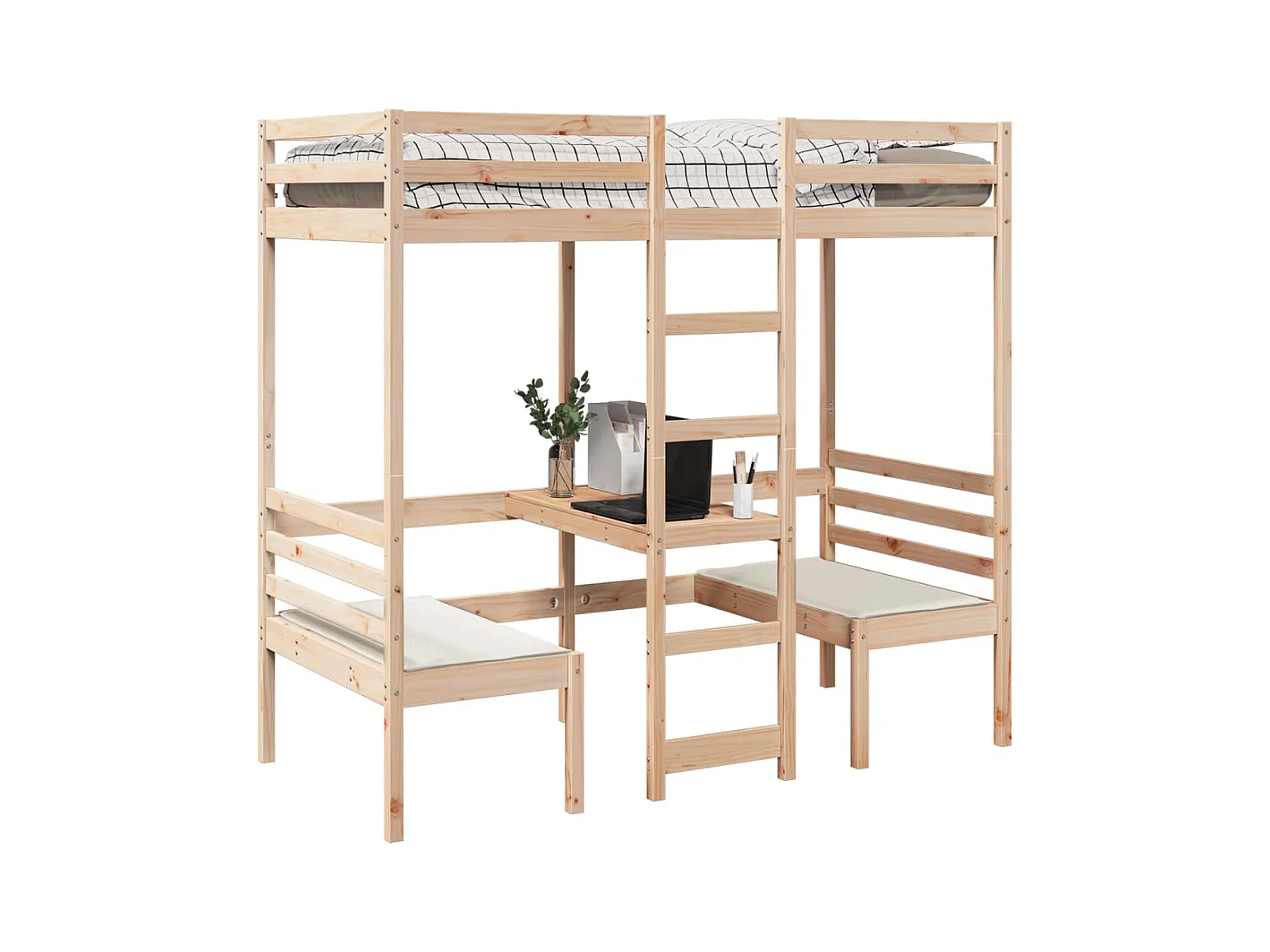 Lit mezzanine avec bureau et chaises 90x200 cm pin massif