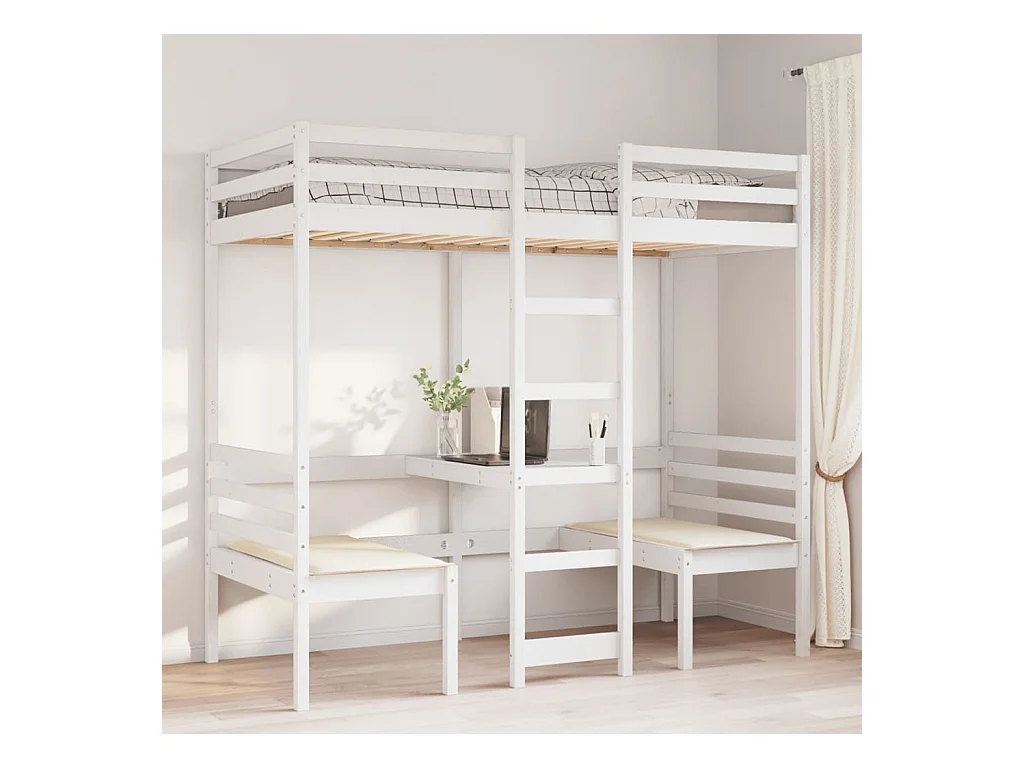 Lit mezzanine avec bureau et chaises blanc 75x190 cm pin massif