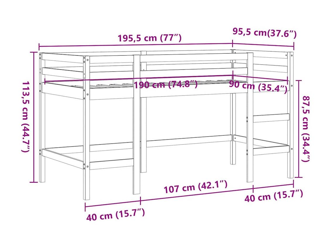 Lit mezzanine d'enfants sans matelas avec échelle 90x190 cm