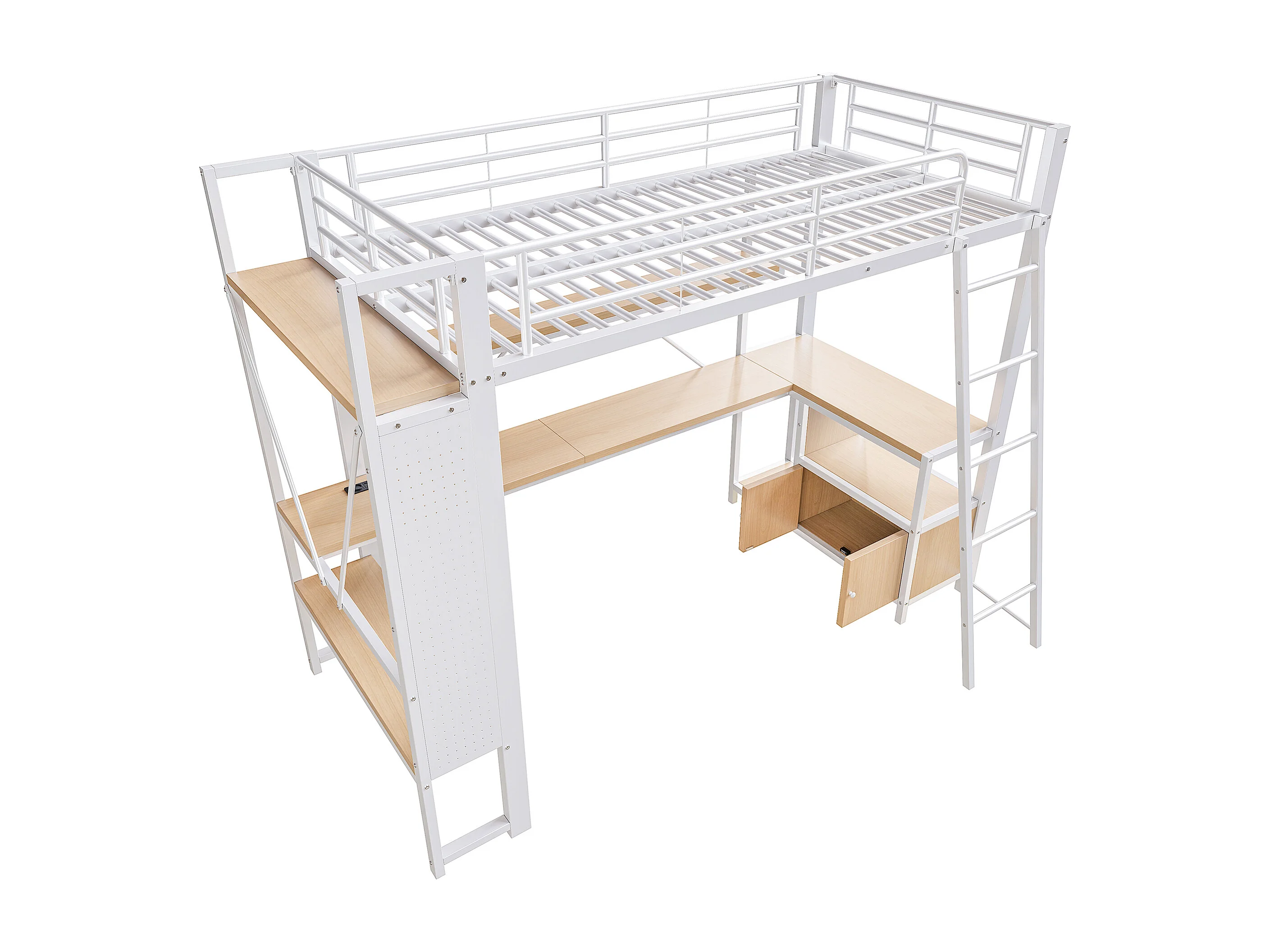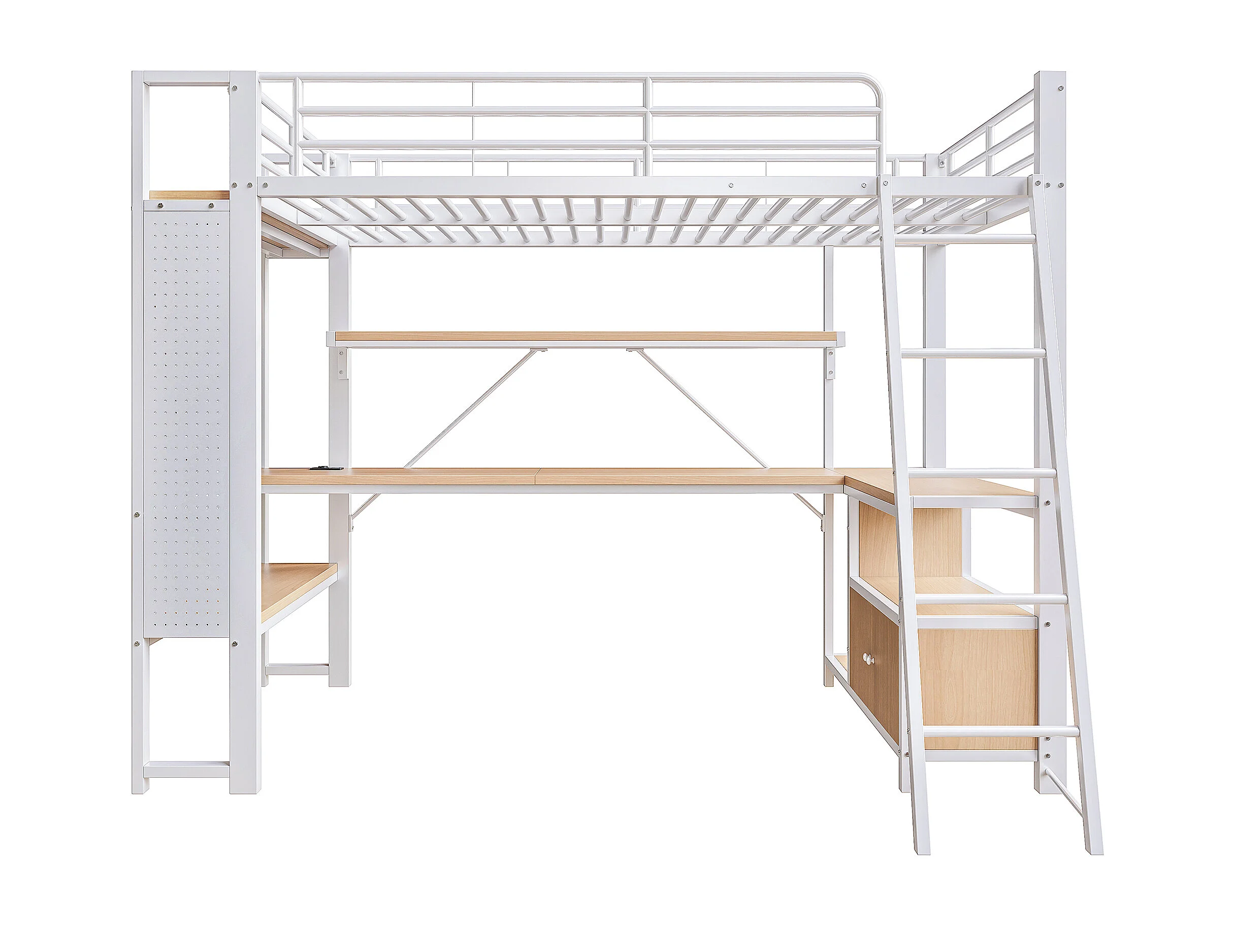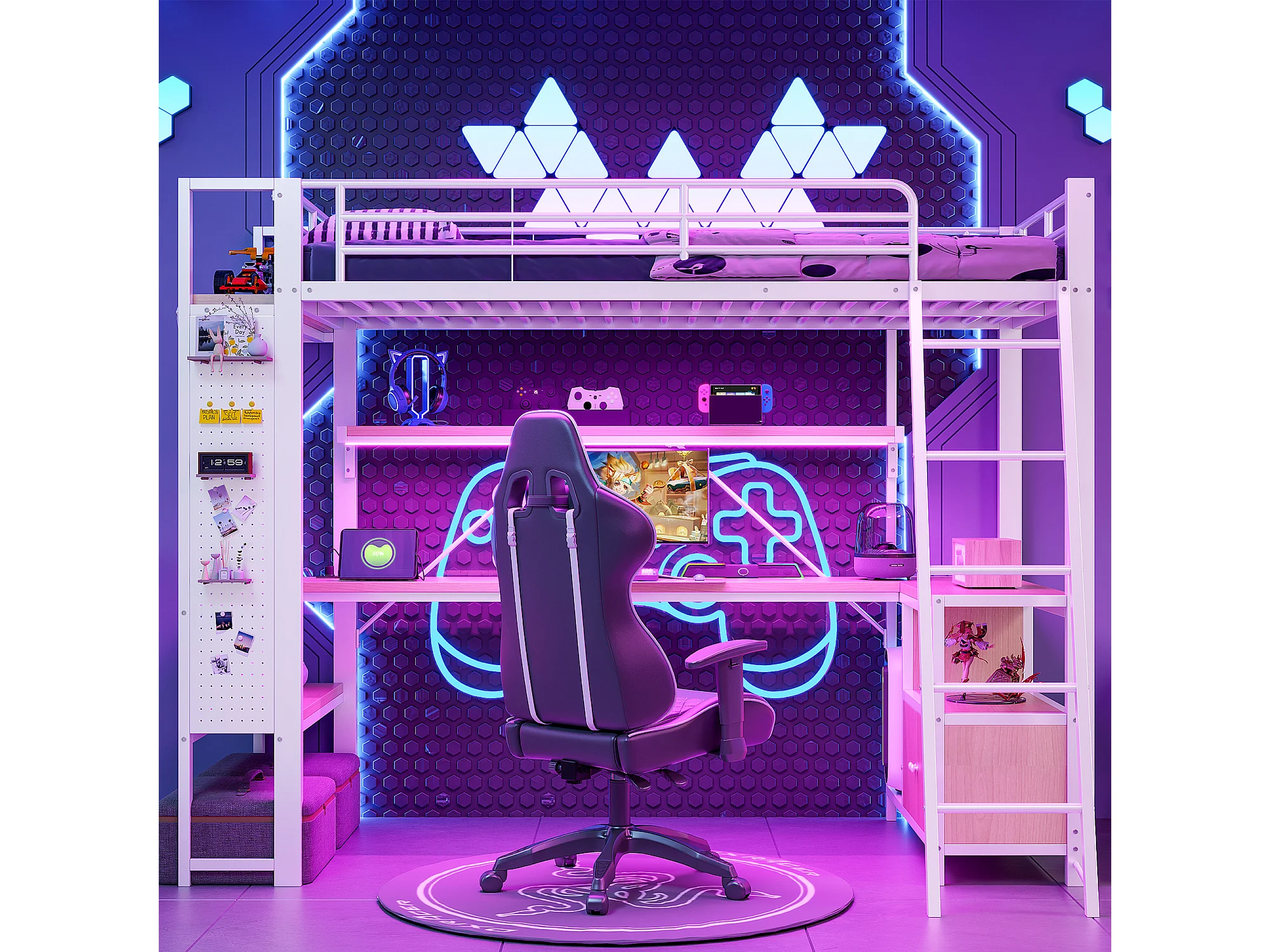 Lit mezzanine enfant 90x200 cm métal blanc avec bureau, étagères , LED et USB