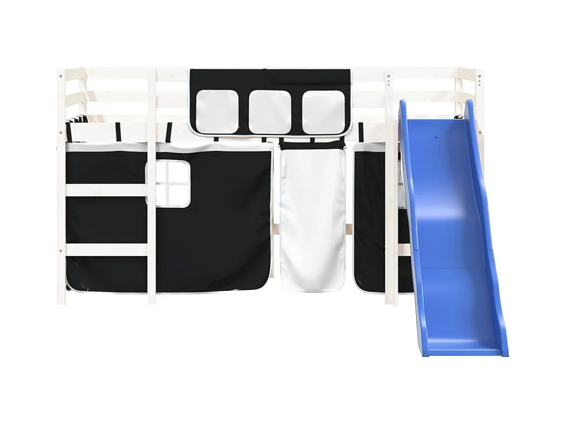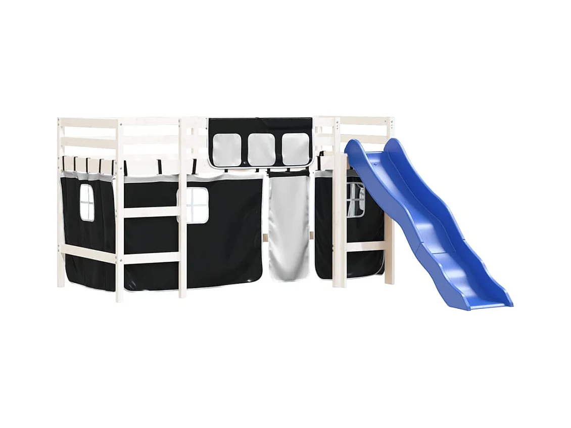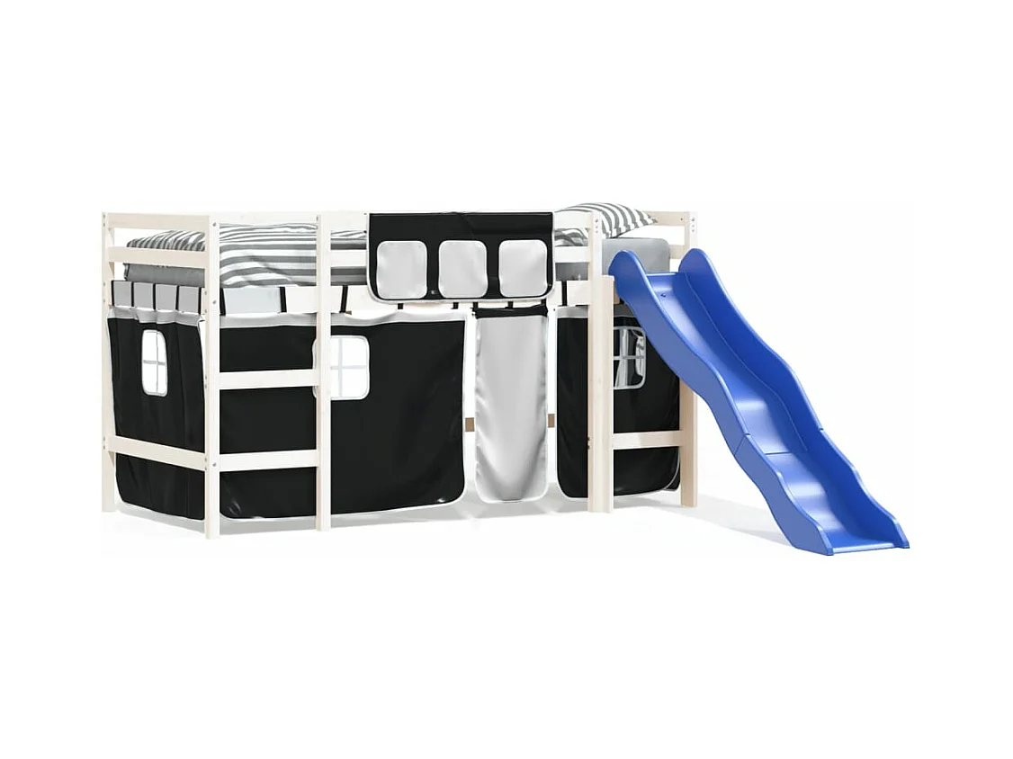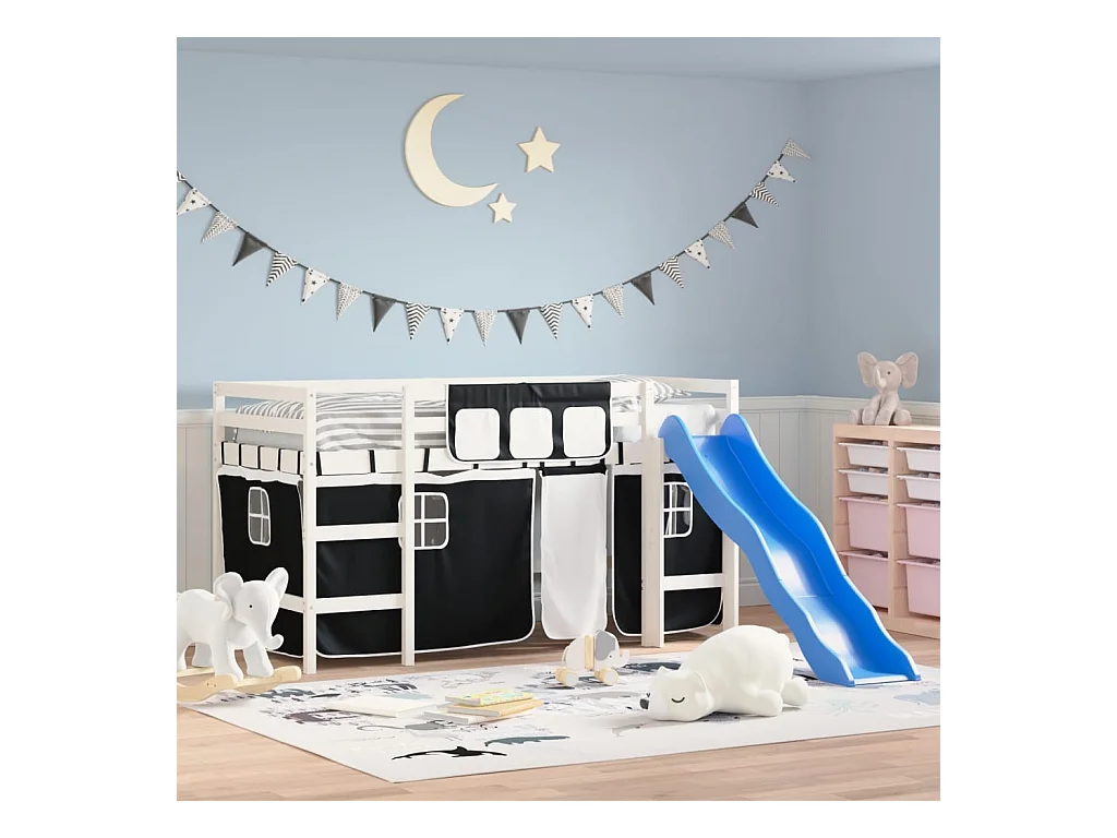 Lit mezzanine enfants et rideaux blanc/noir 90x190cm pin massif HOQW69540