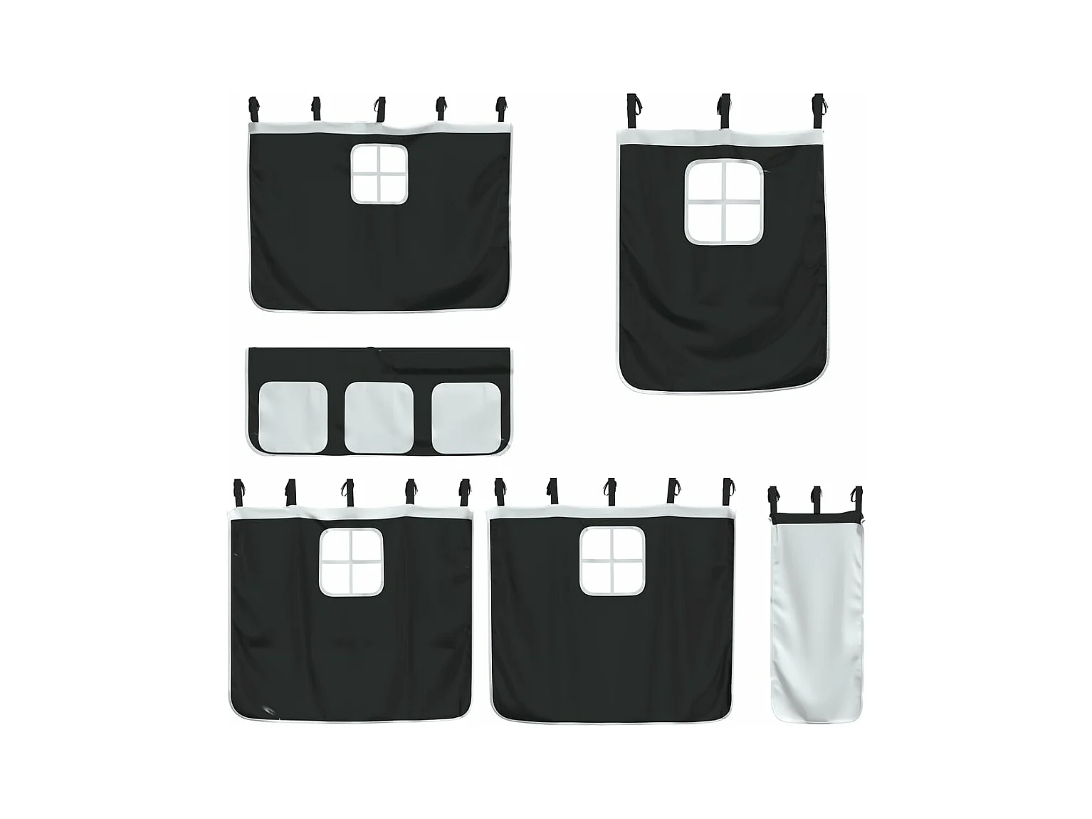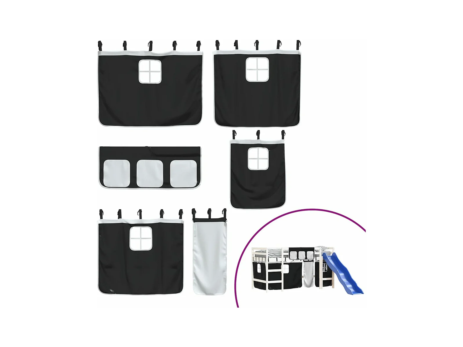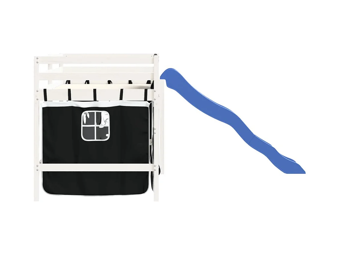 Lit mezzanine enfants et rideaux blanc/noir 90x190cm pin massif HOQW69540