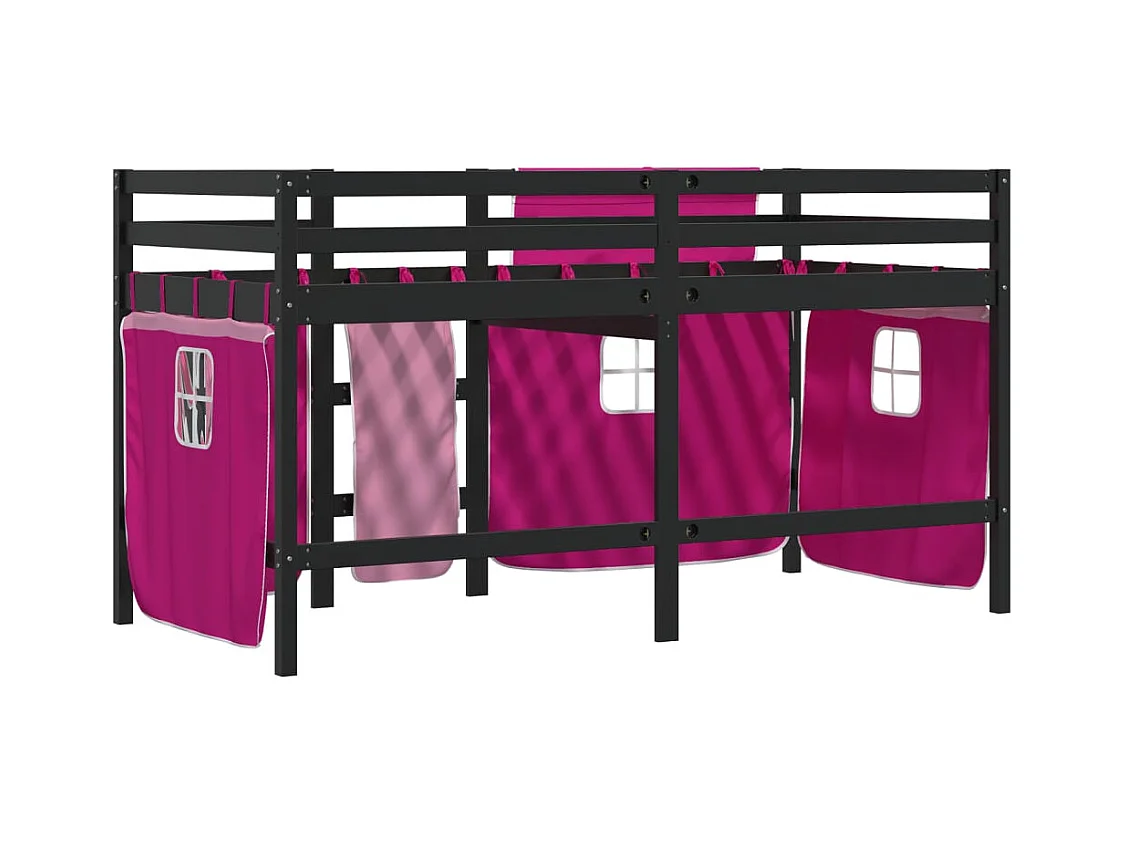 Lit mezzanine enfants et rideaux rose 80x200cm bois pin massif FR95320