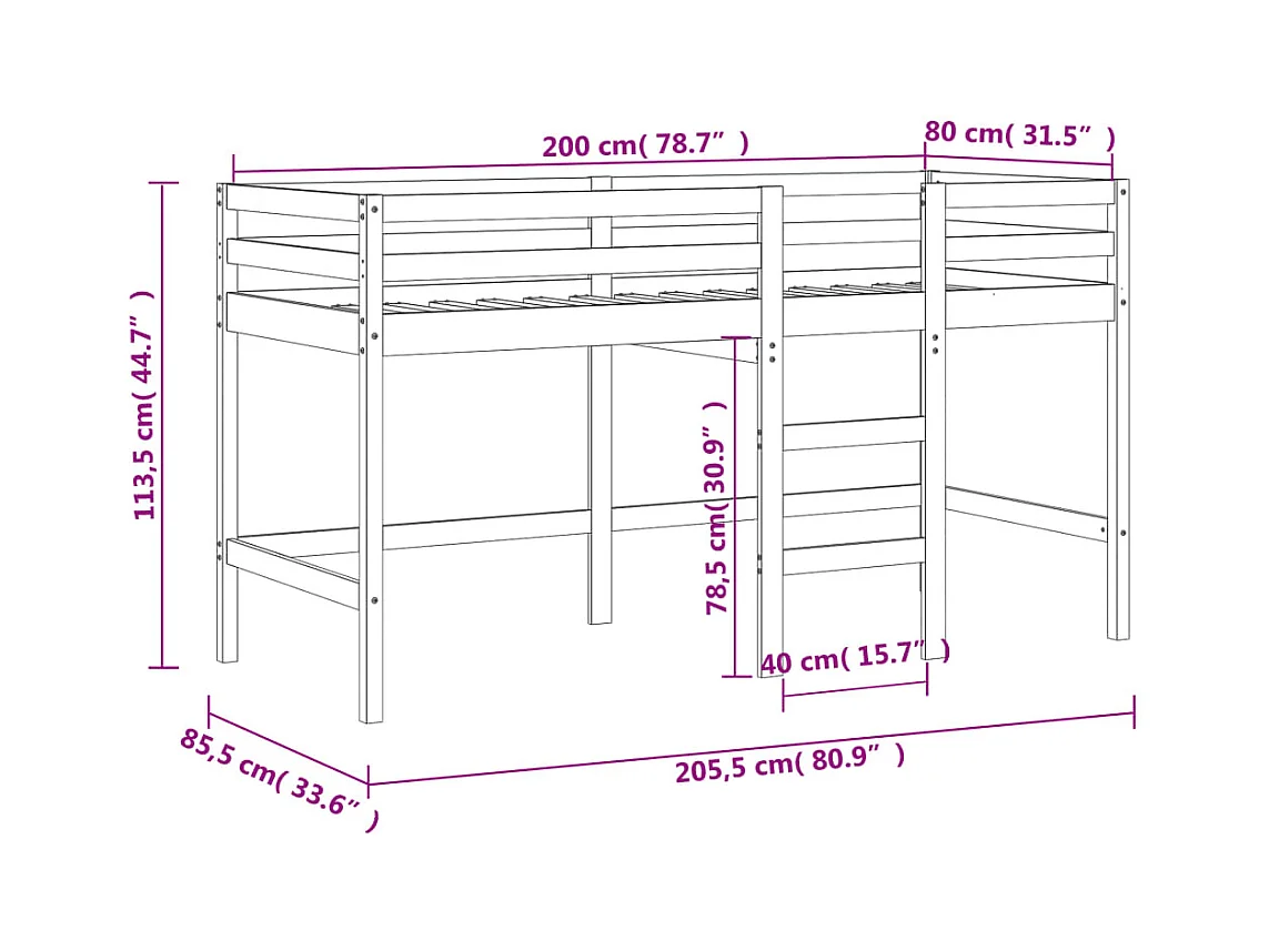 Lit mezzanine enfants et rideaux rose 80x200cm bois pin massif FR69529