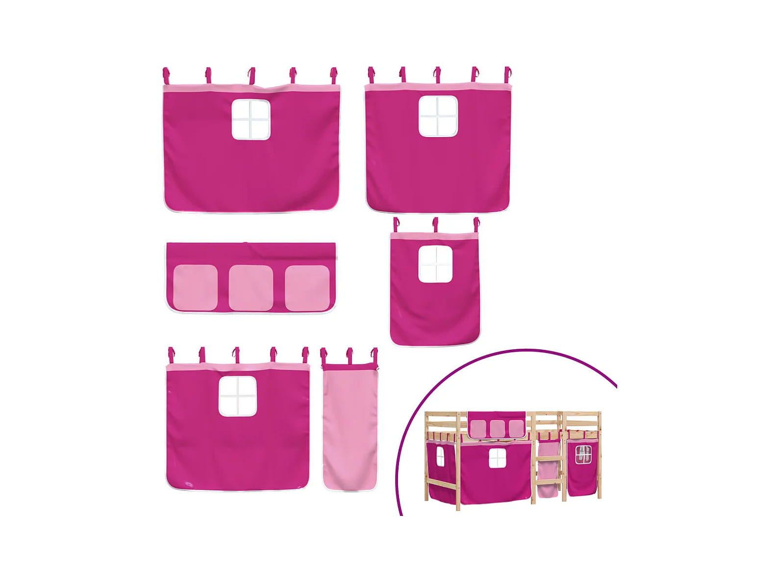Lit mezzanine enfants et rideaux rose 80x200cm bois pin massif FR95320