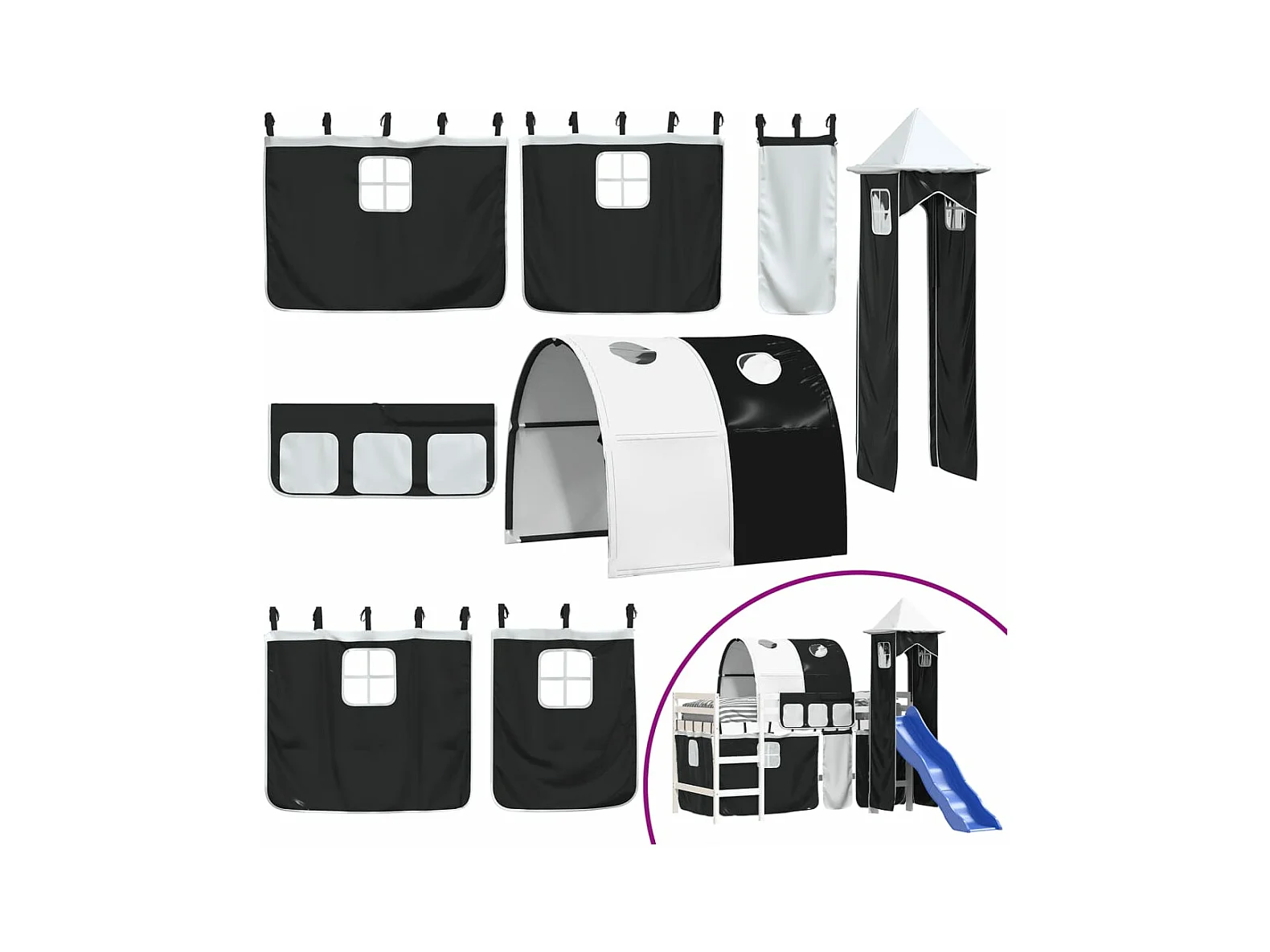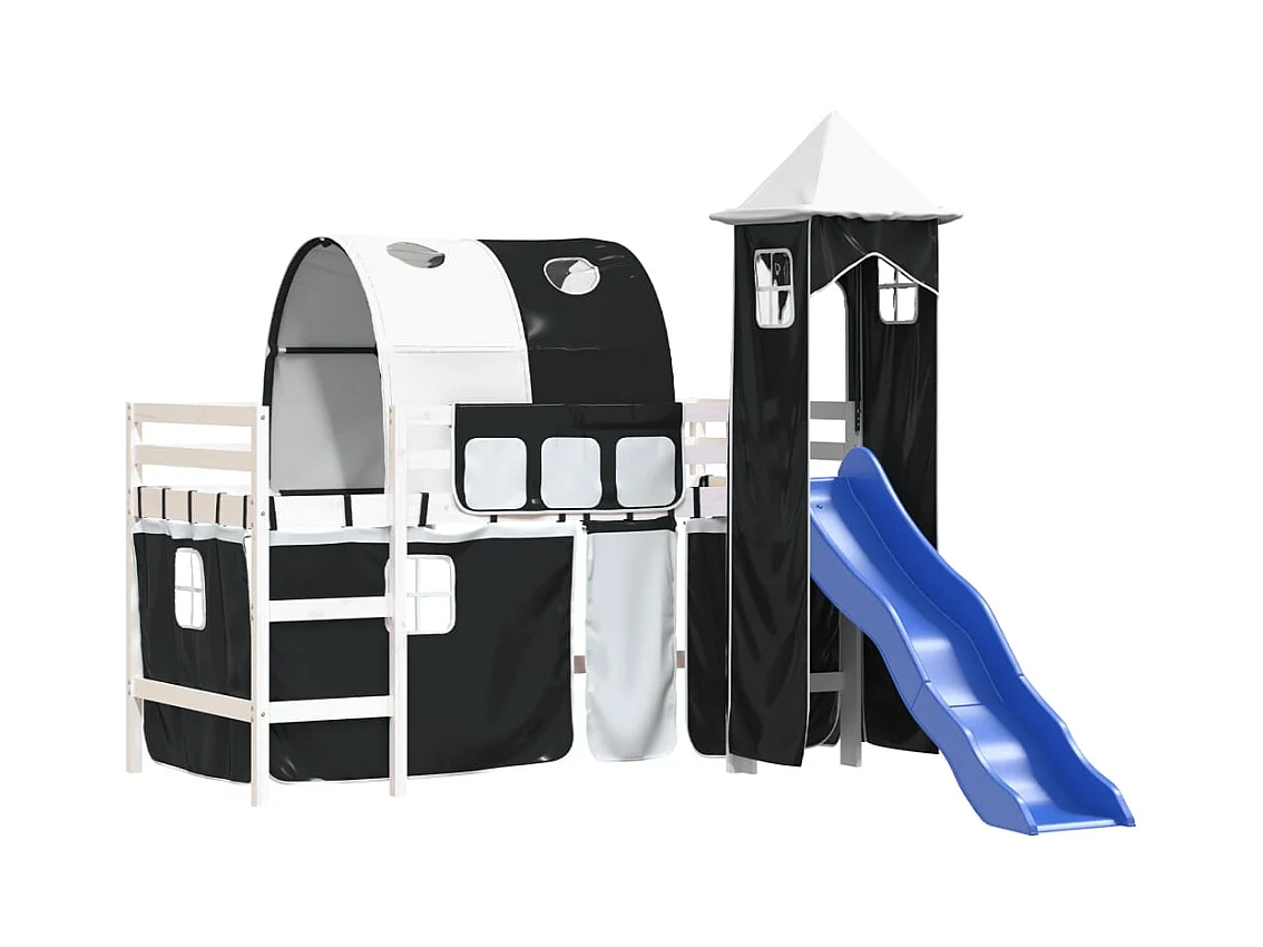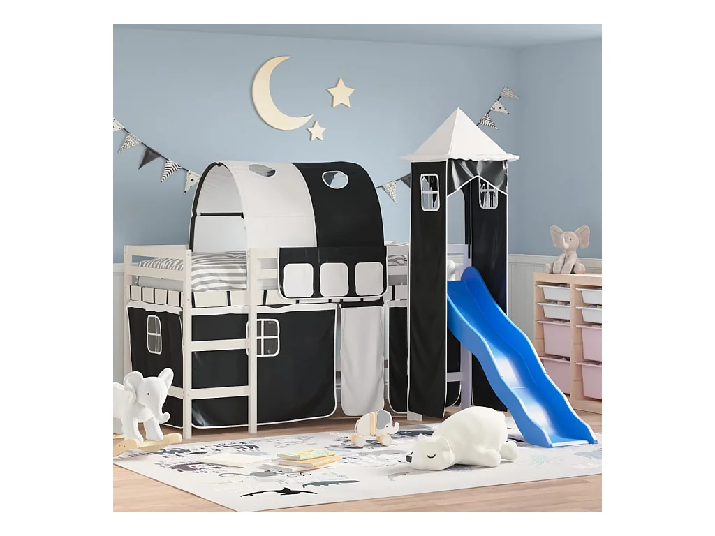 Lit mezzanine enfants avec tour blanc/noir 80x200cm pin massif