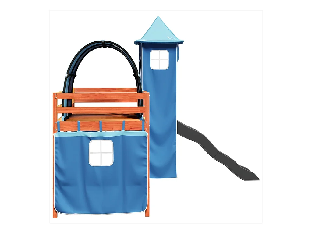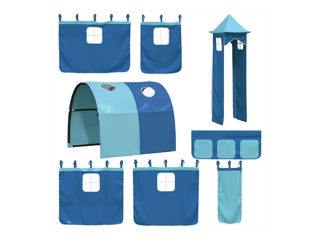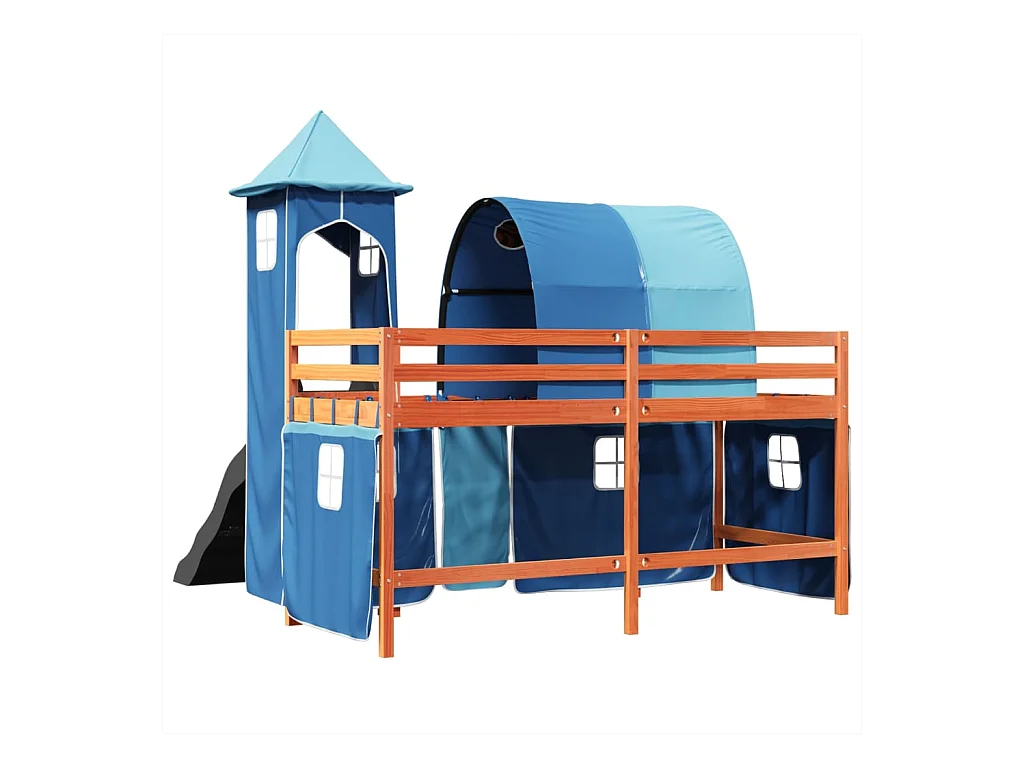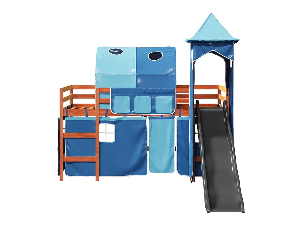 Lit mezzanine enfants avec tour bleu 80x200cm bois pin massif