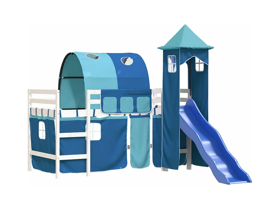 Lit mezzanine enfants avec tour bleu 80x200cm bois pin massif HOQW27684