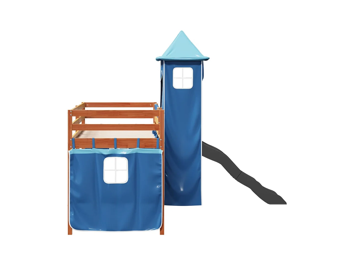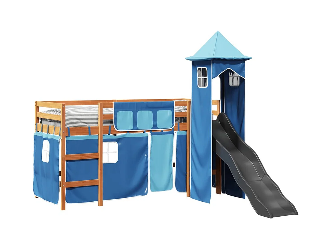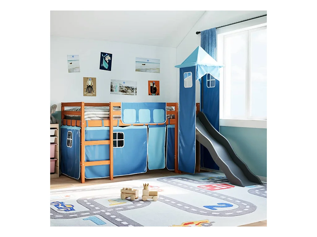 Lit mezzanine enfants avec tour bleu 90x190 cm bois pin massif