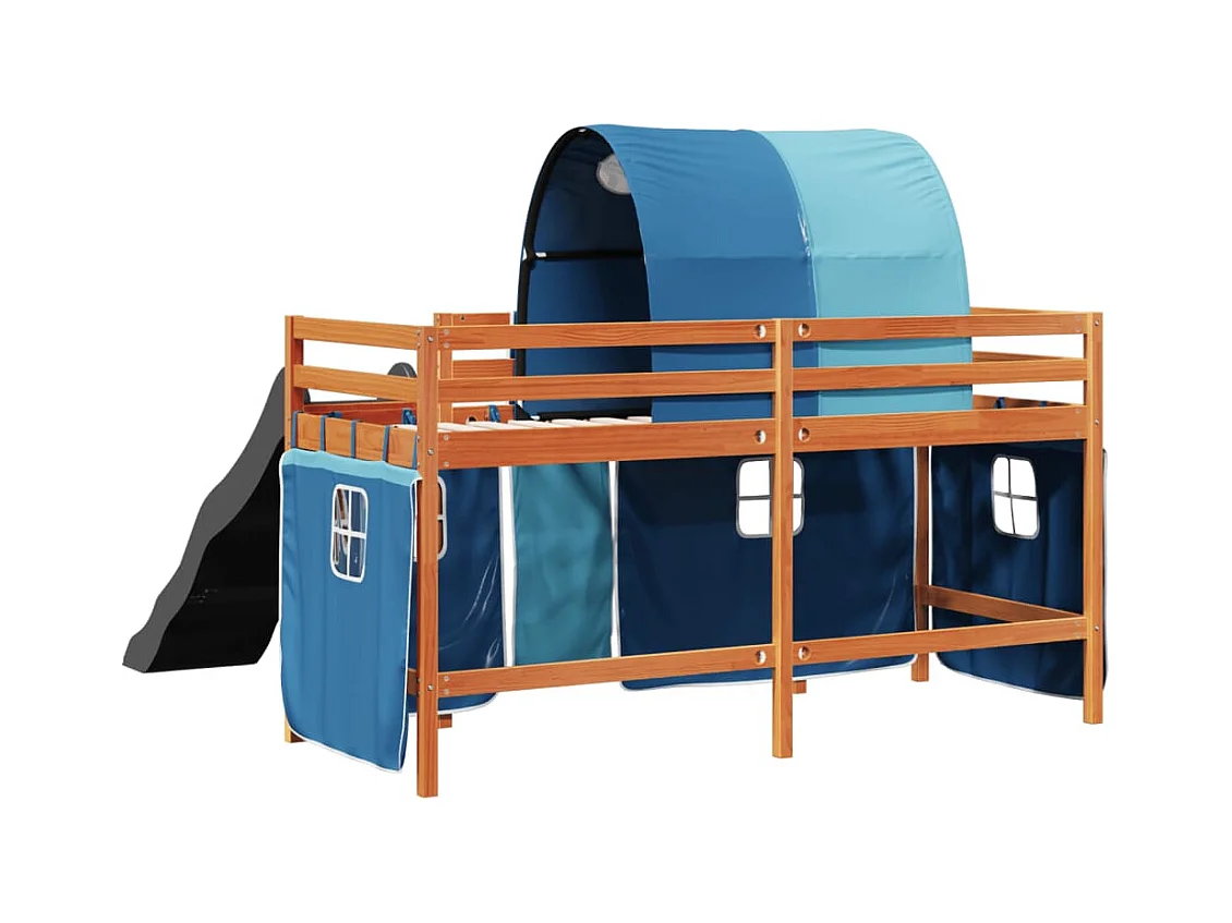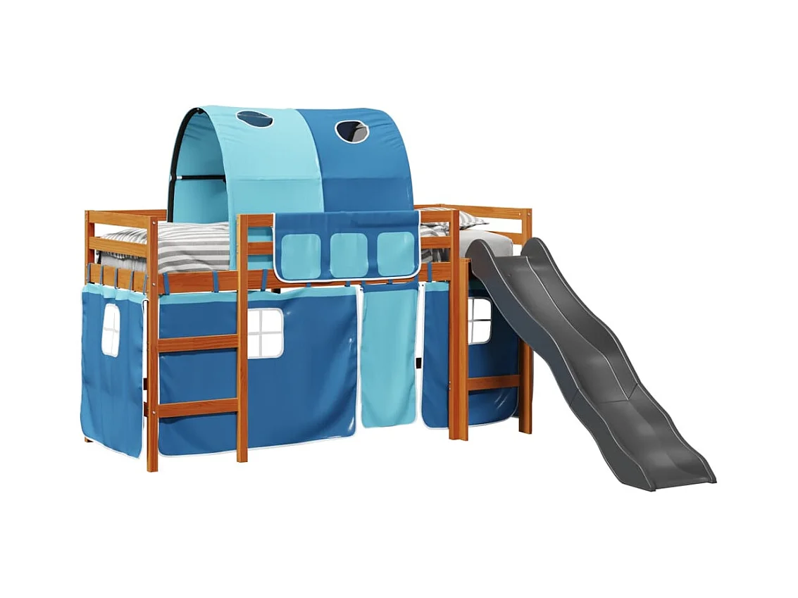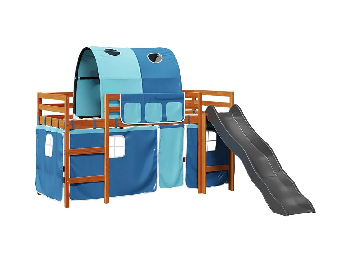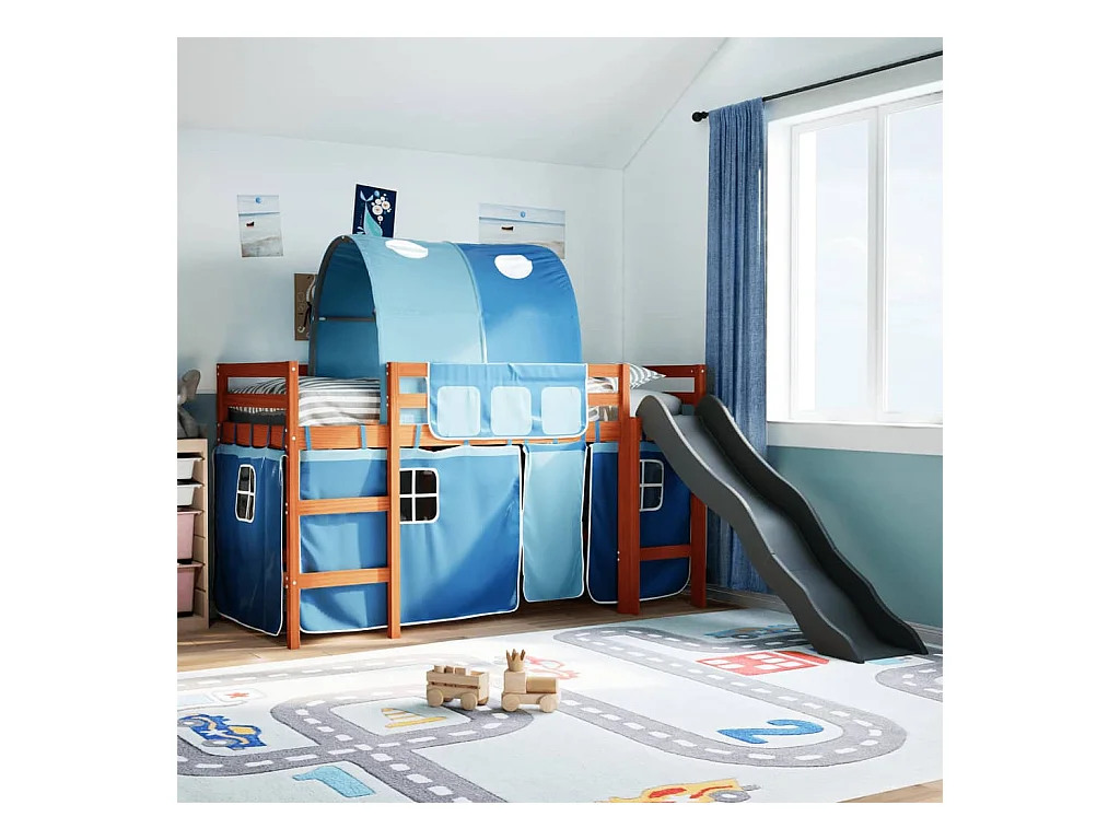 Lit mezzanine enfants avec tunnel bleu 80x200cm bois pin massif