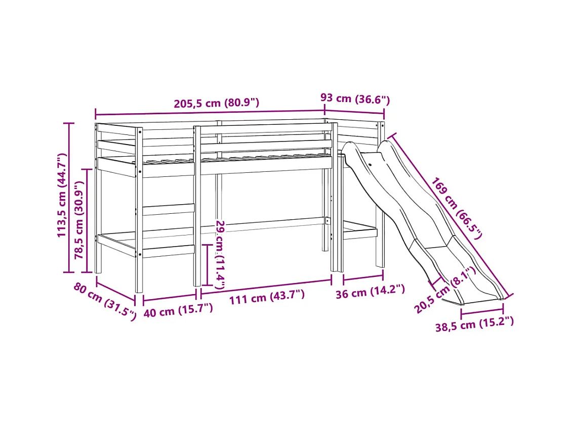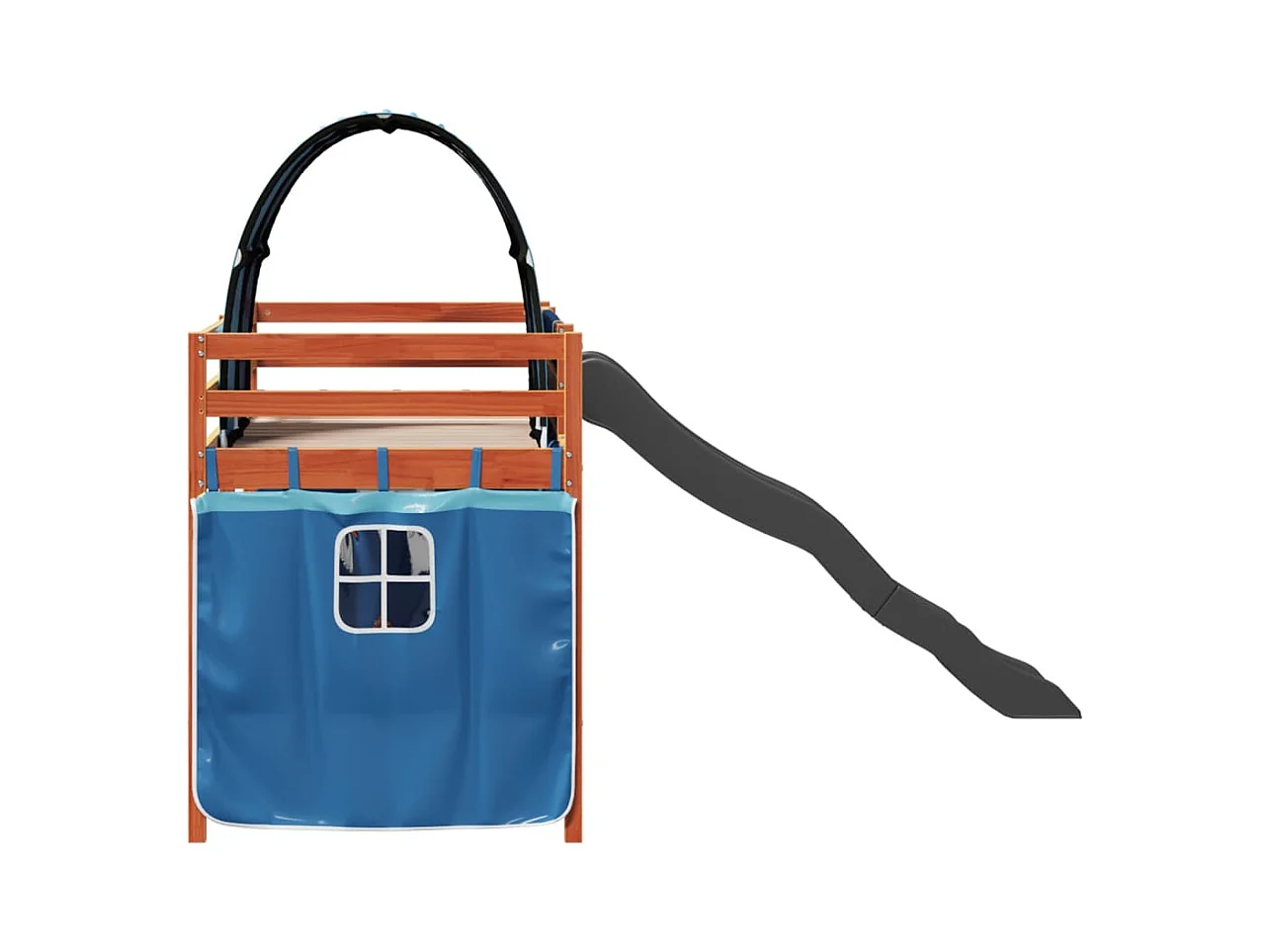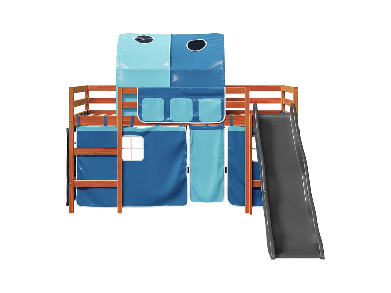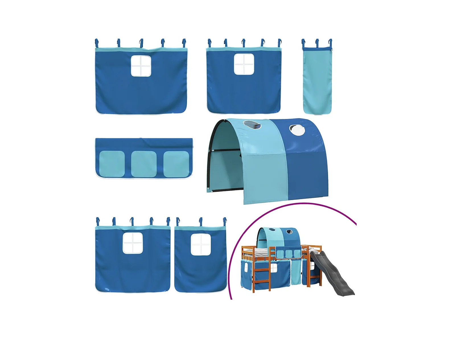 Lit mezzanine enfants avec tunnel bleu 80x200cm bois pin massif