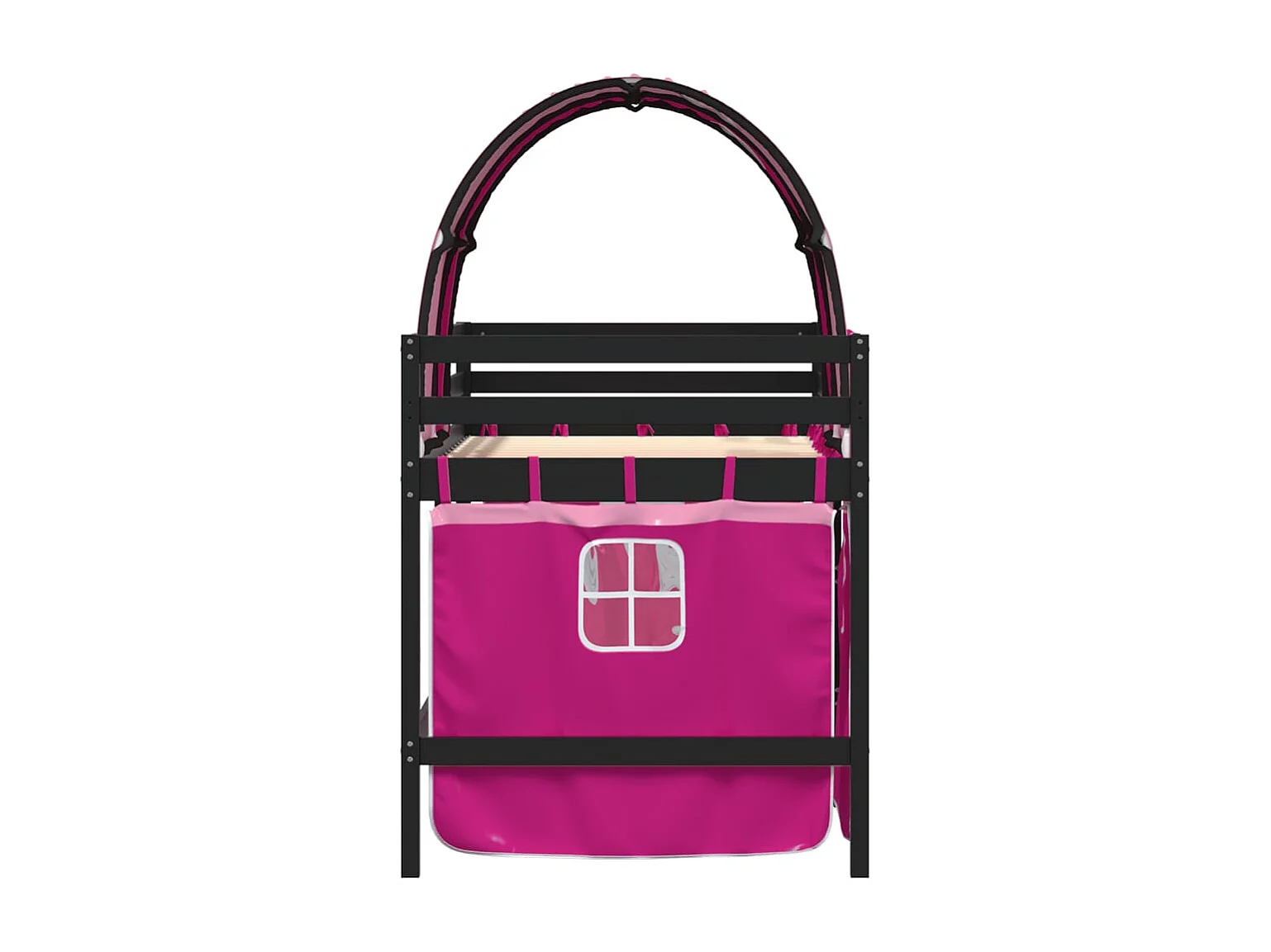 Lit mezzanine enfants avec tunnel rose 80x200 bois pin massif