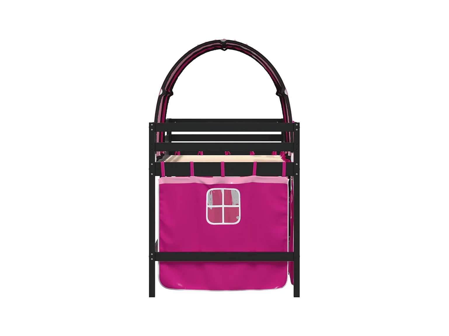 Lit mezzanine enfants et rideaux rose 80x200cm bois pin massif FR69529