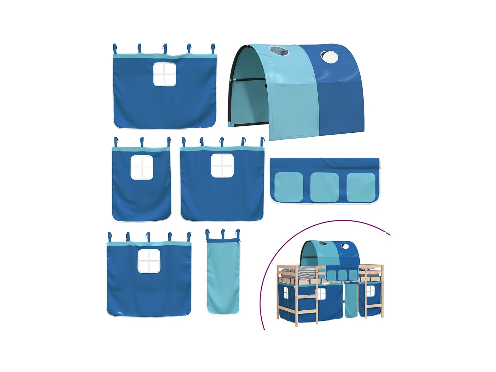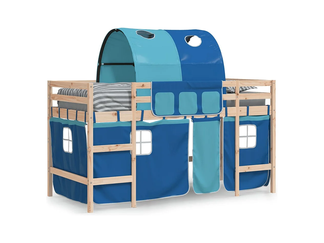 Lit mezzanine enfants avec tunnel sans matelas bleu 90x200 cm
