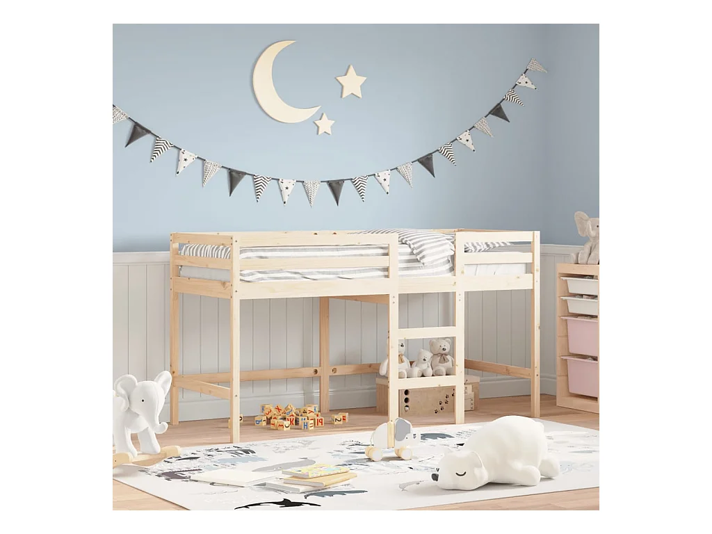 Lit mezzanine enfants échelle 80x200 cm bois pin massif