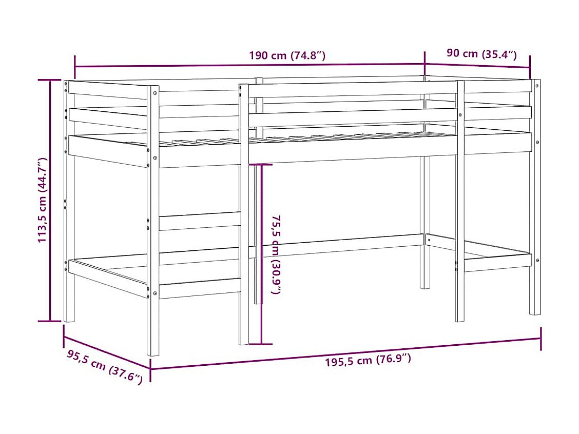 Lit mezzanine d'enfants sans matelas avec échelle 90x190 cm