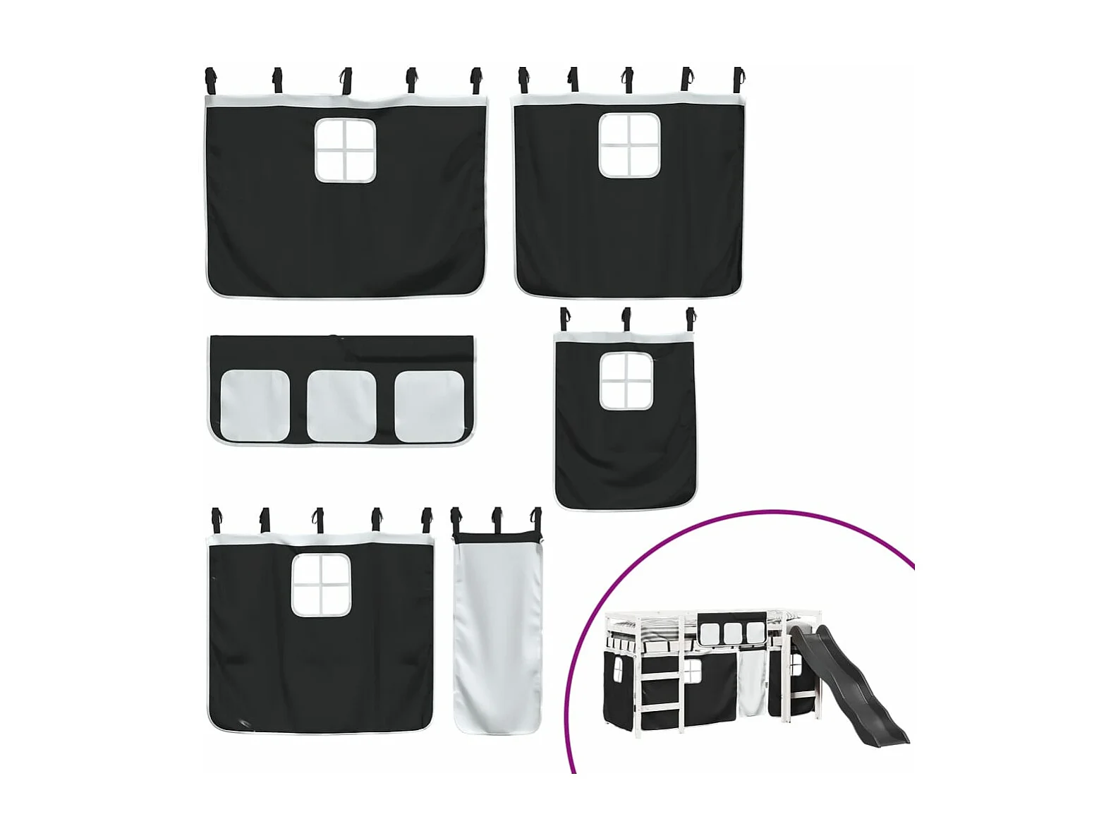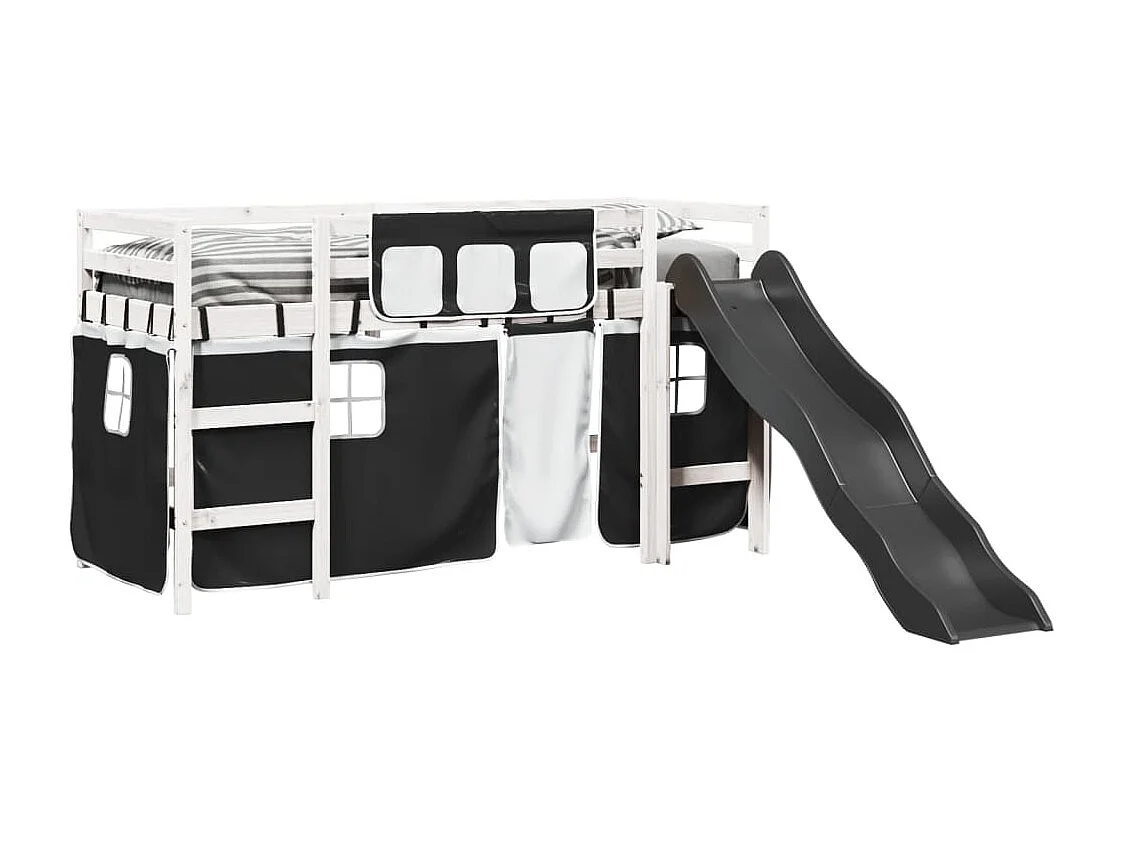 Lit mezzanine enfants et rideaux blanc/noir 80x200cm pin massif
