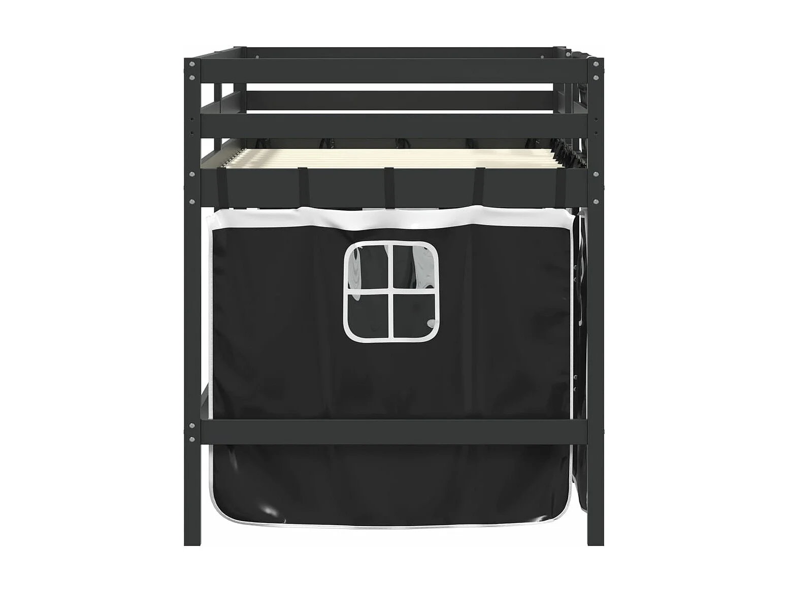Lit mezzanine enfants et rideaux blanc/noir 90x190cm pin massif FR34221
