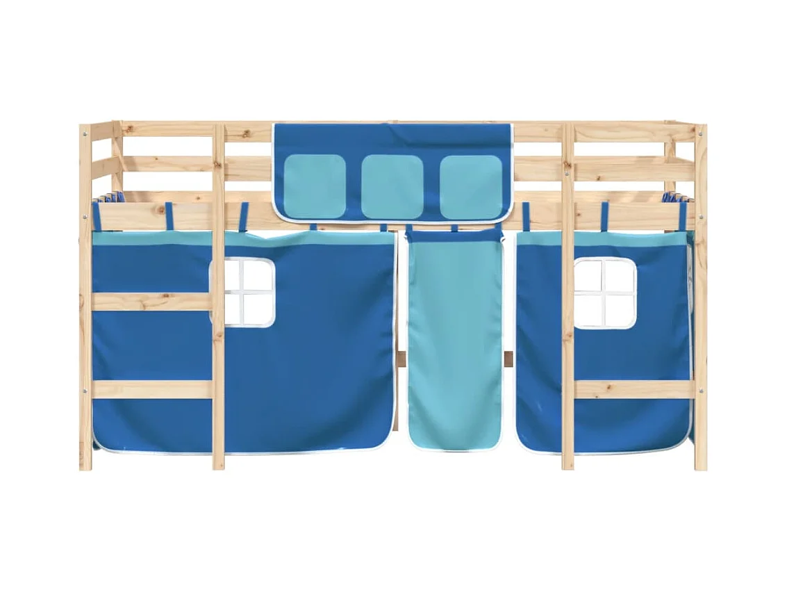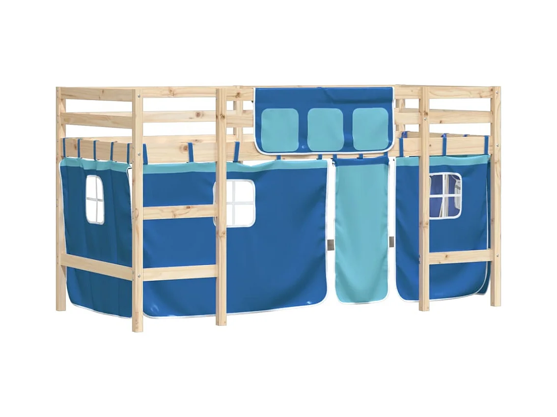 Lit mezzanine enfants et rideaux bleu 90x200cm bois pin massif HOQW18038