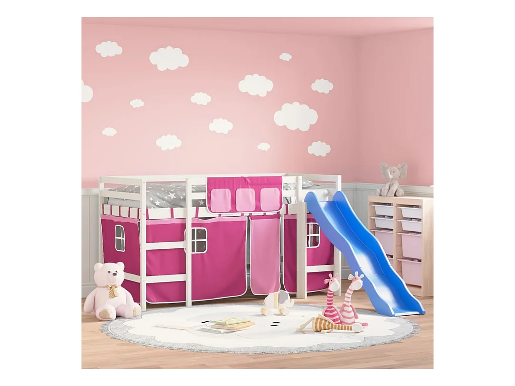 Lit mezzanine enfants et rideaux rose 80x200cm bois pin massif HOQW75831