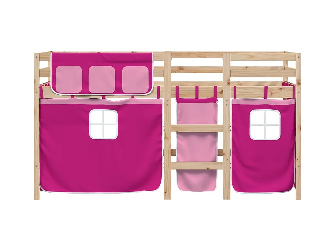 Lit mezzanine enfants et rideaux rose 90x200cm bois pin massif FR87901