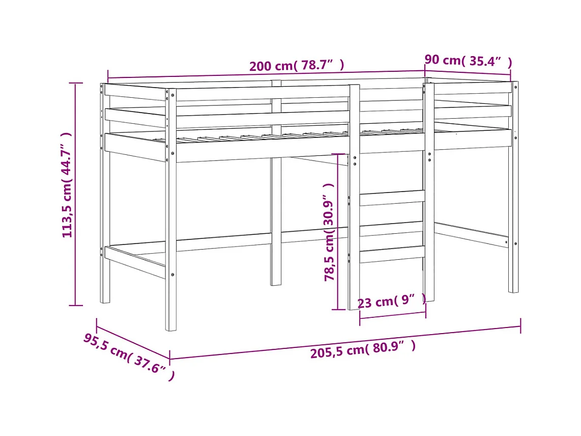 Lit mezzanine enfants avec tunnel sans matelas 90x200 cm