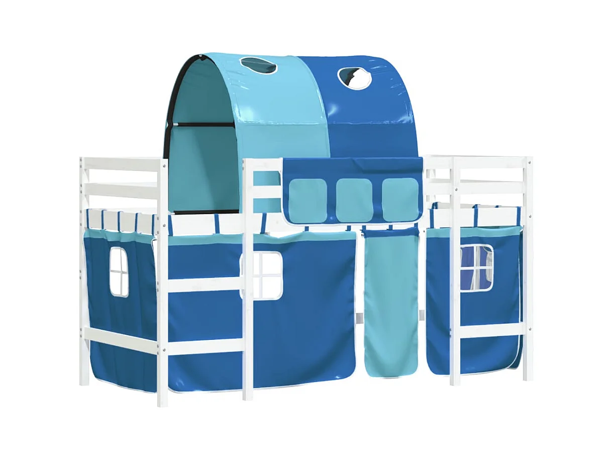 Lit mezzanine enfants avec tunnel bleu 90x200cm bois pin massif HOQW26010