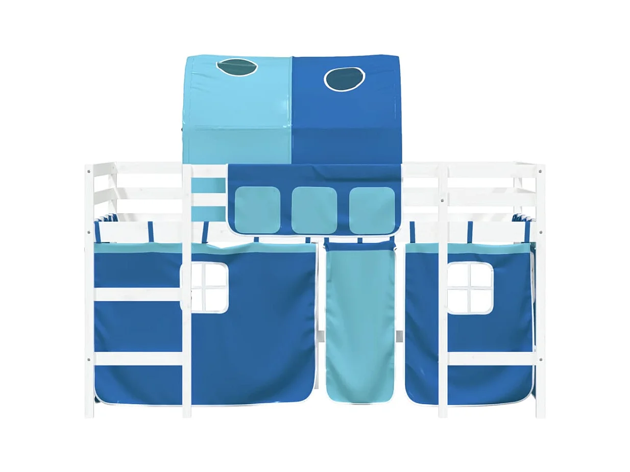 Lit mezzanine enfants et rideaux bleu 90x200cm bois pin massif HOQW18038