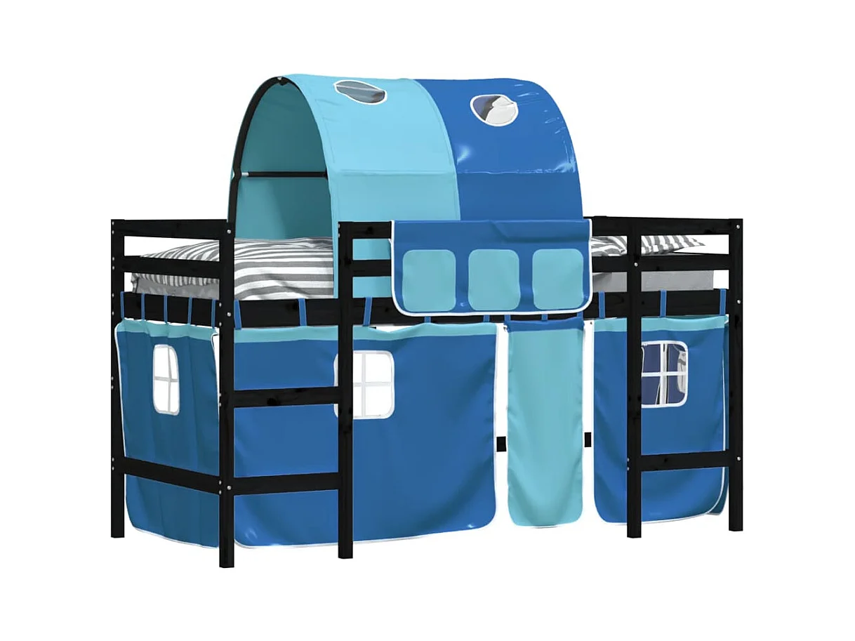 Lit mezzanine enfants et tunnel bleu 90x200cm bois pin massif HOQW67855