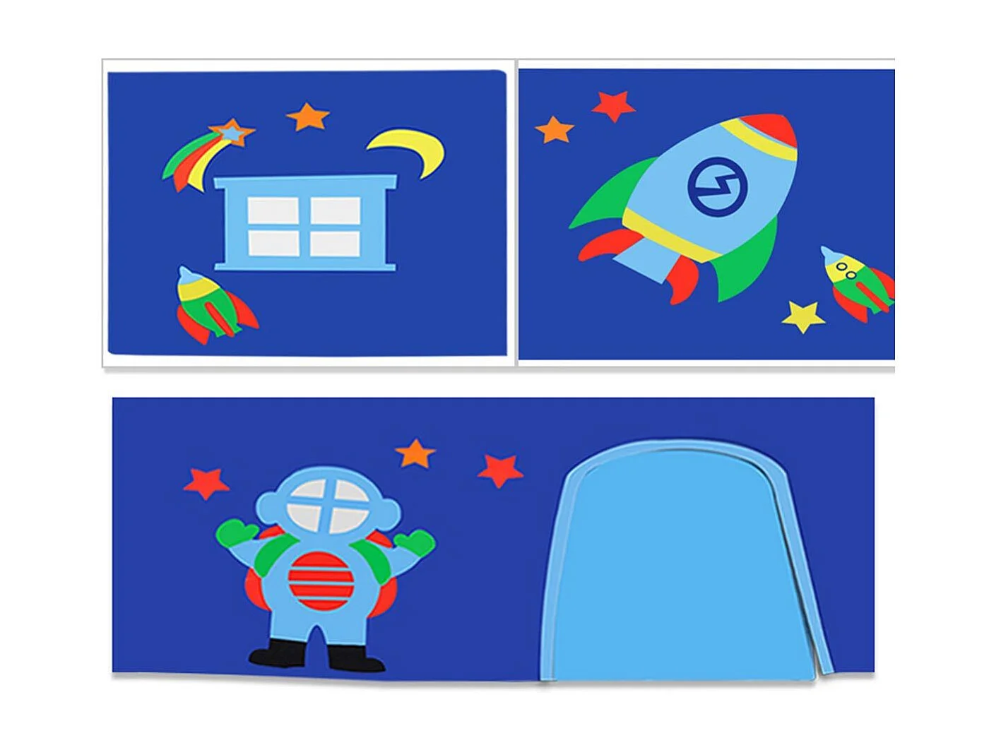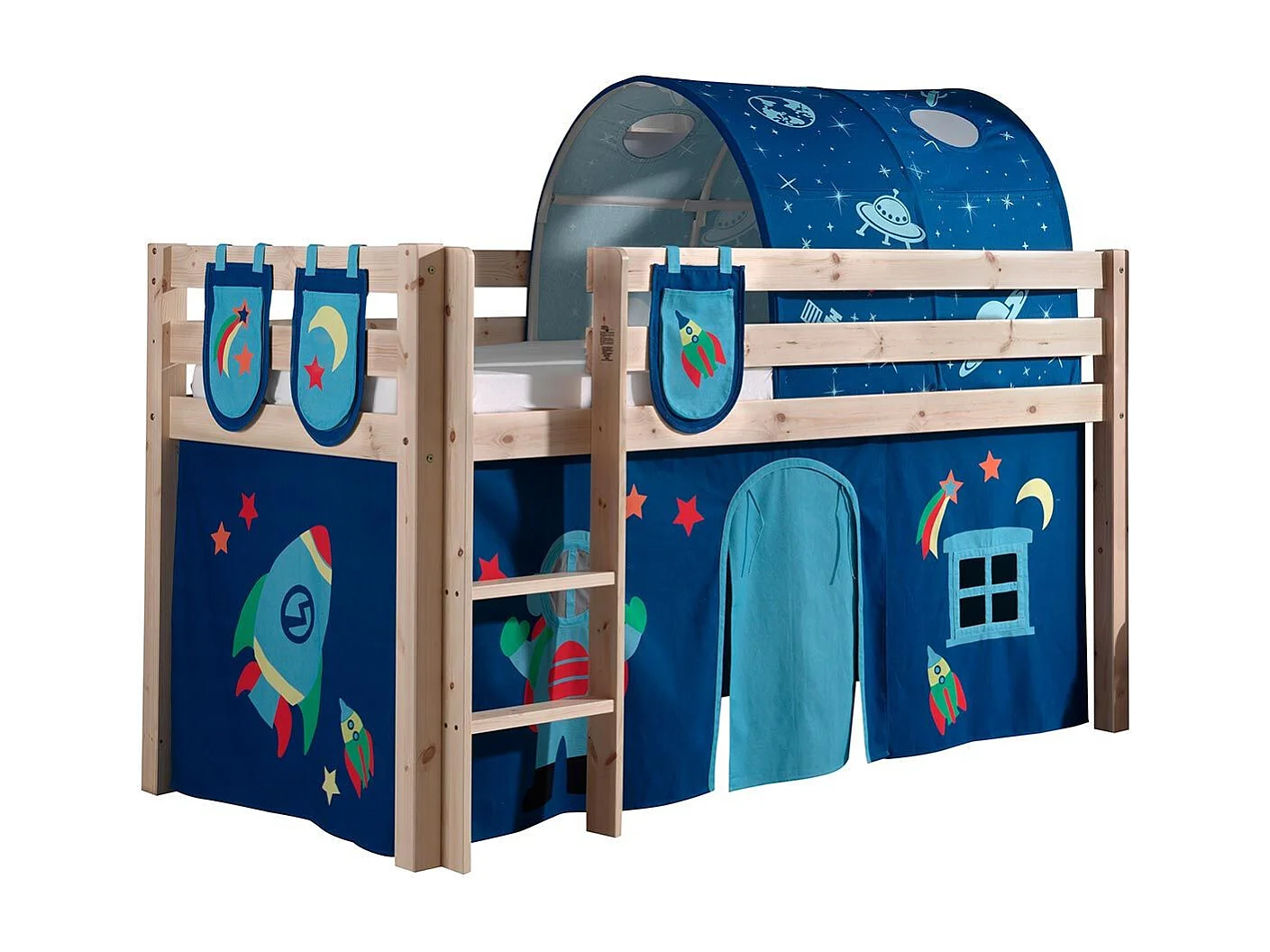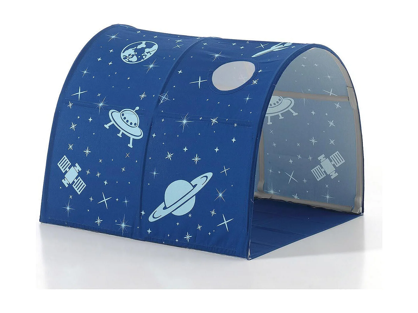 Pack - Lit Enfant Surélevé, Tente, 3 Pochettes & Tunnel "Pino Astronaute II" Naturel