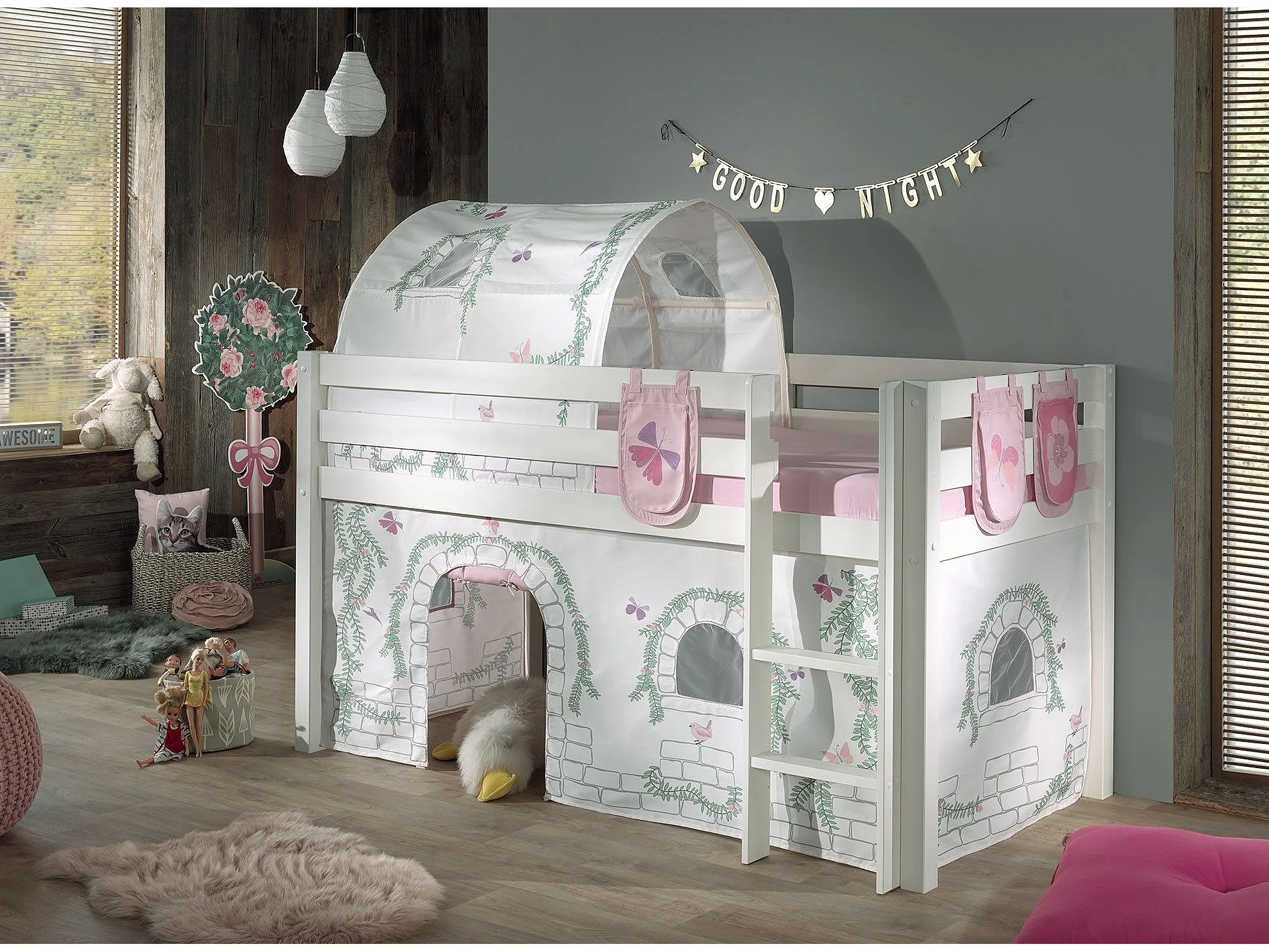 Pack - Lit Enfant Surélevé, Tente, 3 Pochettes & Tunnel "Pino Princesse" Blanc
