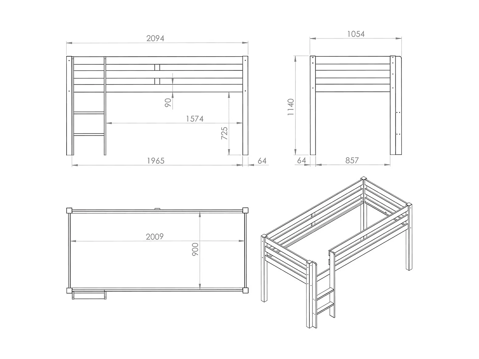 Lit Enfant Surélevé "Pino Police" 90x200cm Gris