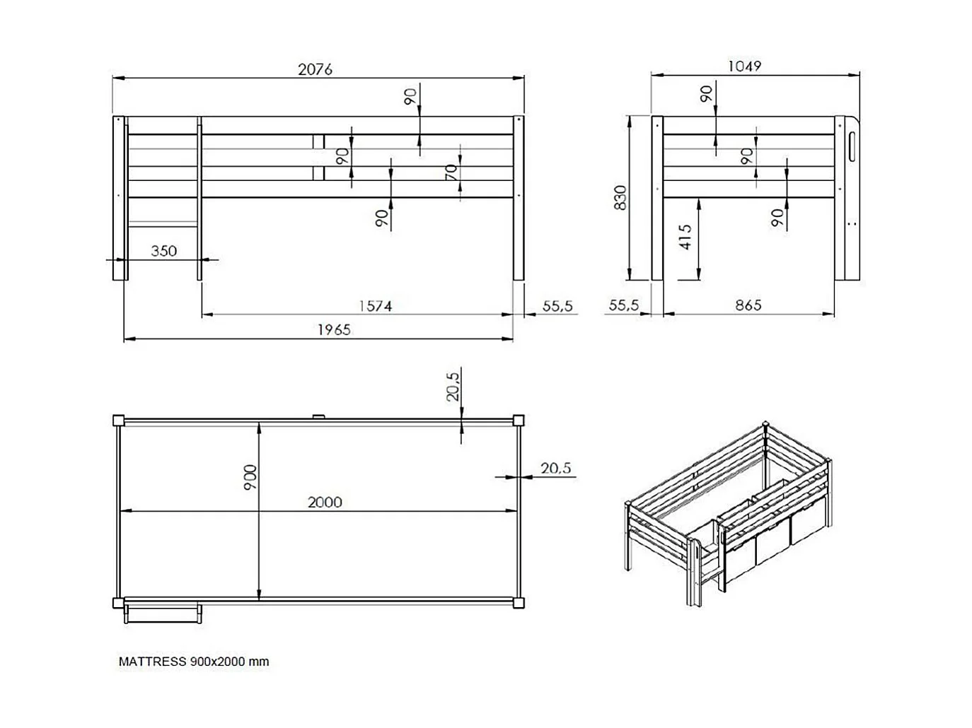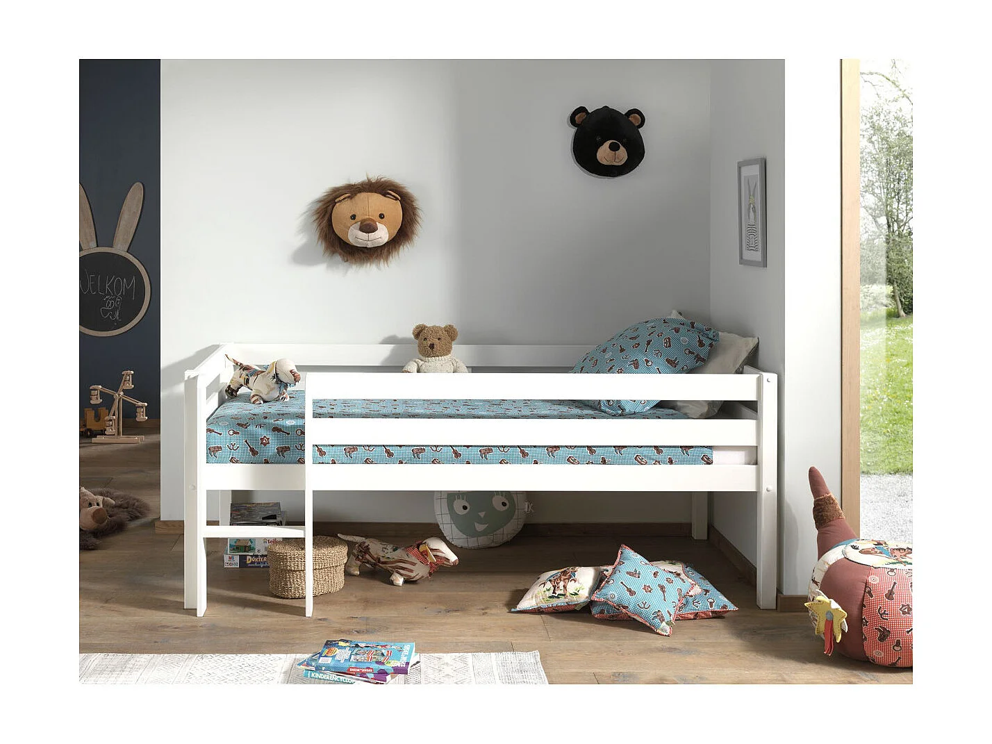Lit Enfant Surélevé & Échelle "Pino" 90x200cm Blanc