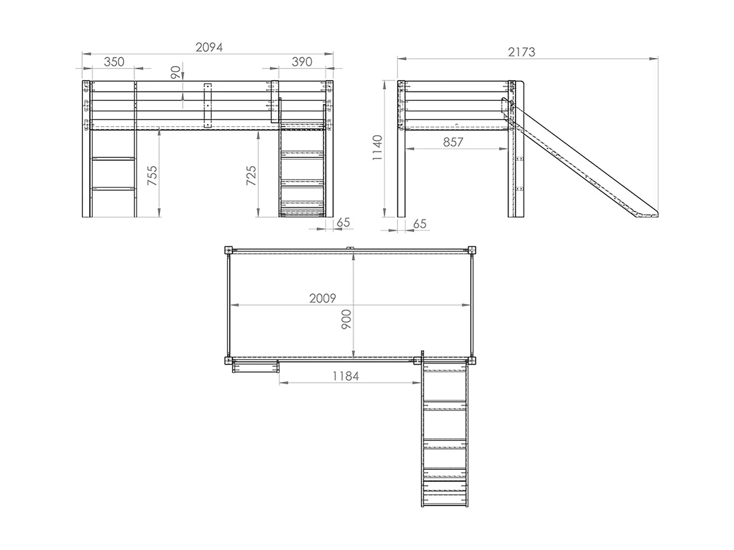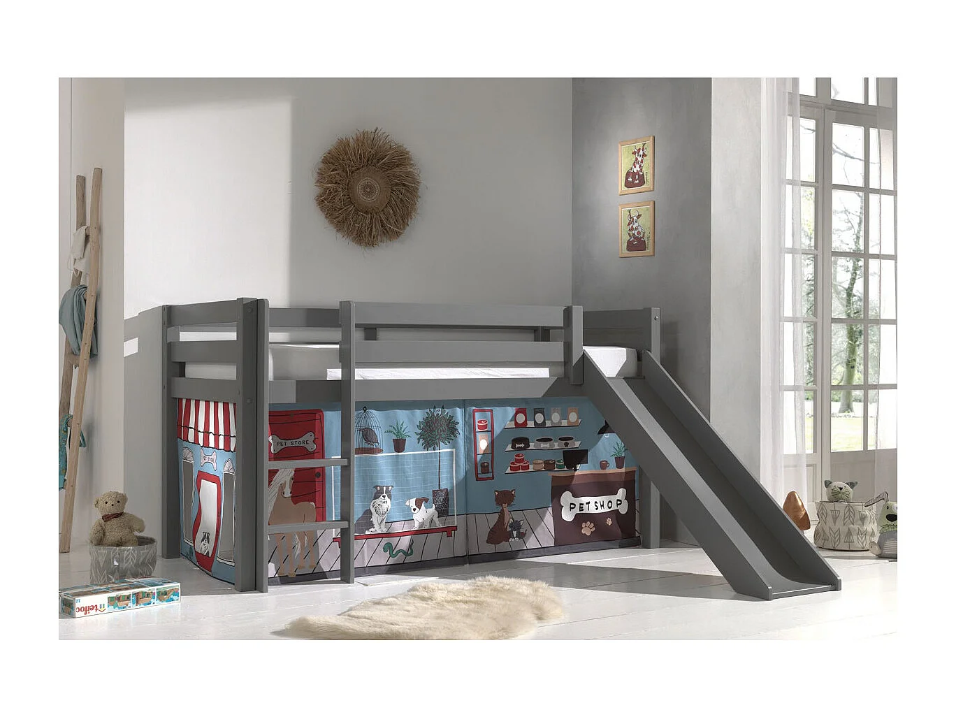 Lit Enfant Surélevé Avec Toboggan "Pino Pet Shop" 90x200cm Gris