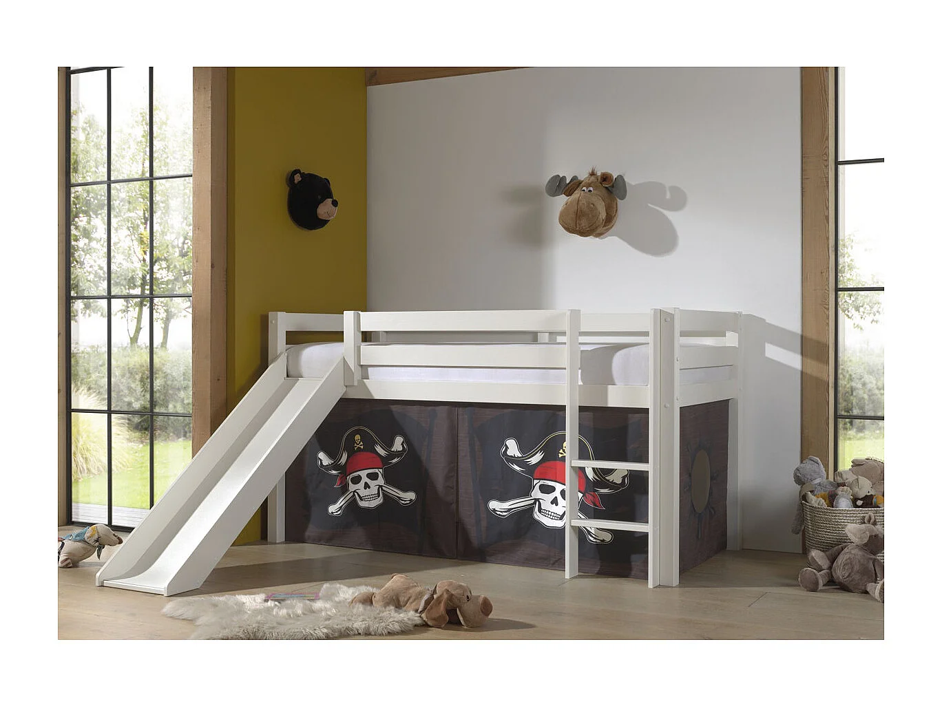 Lit Enfant Surélevé Avec Toboggan "Pino Caribian Pirates" 90x200cm Blanc