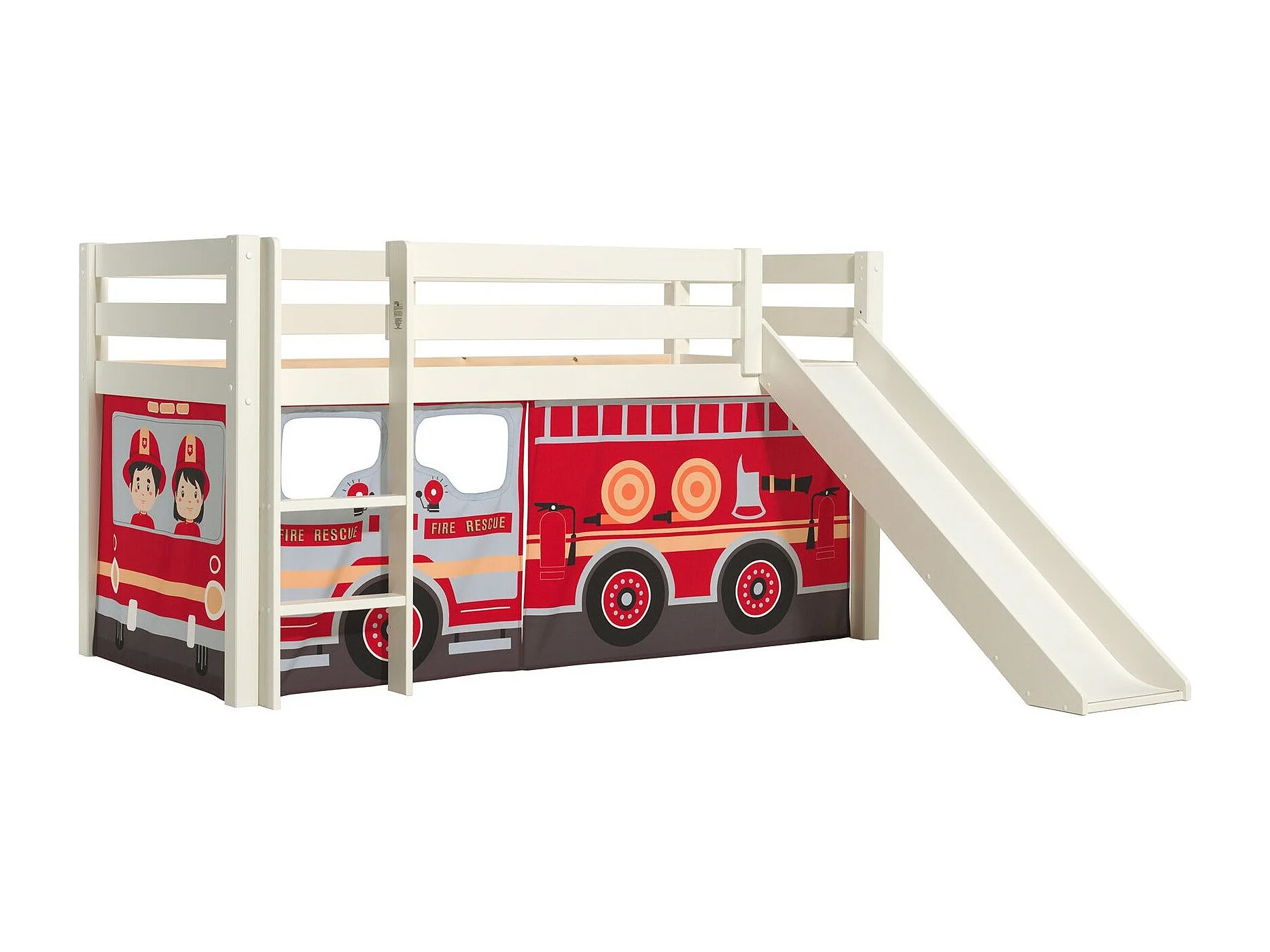 Lit Enfant Surélevé Avec Toboggan "Pino Fire Truck" 90x200cm Blanc