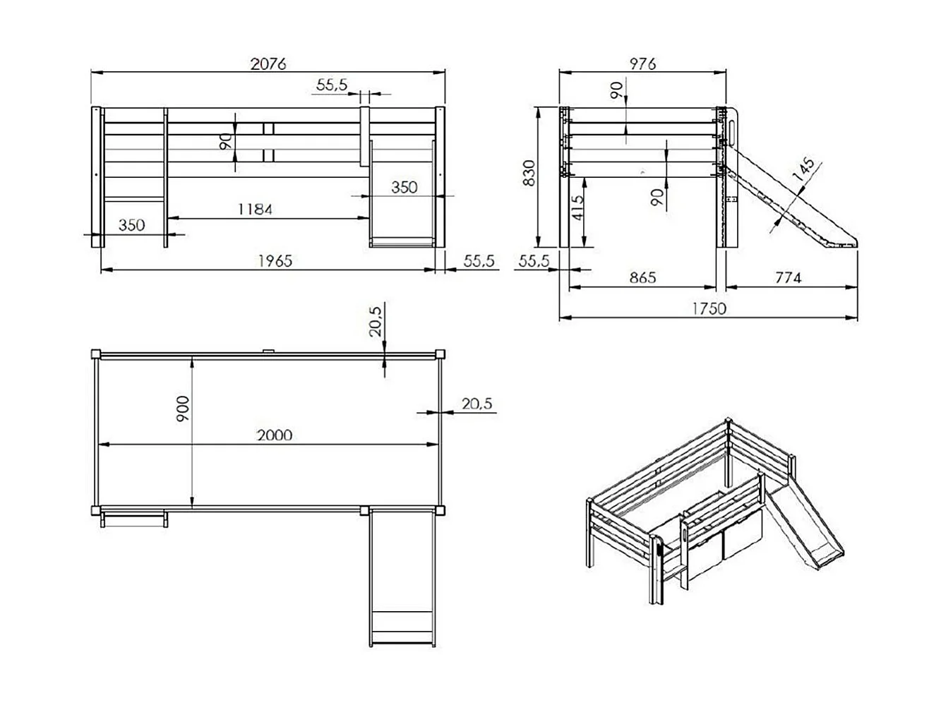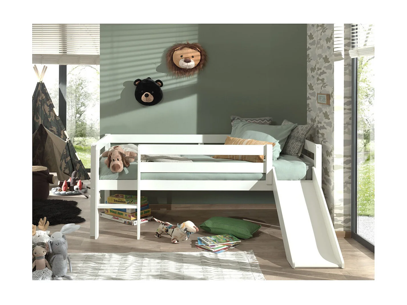 Lit Enfant Surélevé & Toboggan "Pino" 90x200cm Blanc