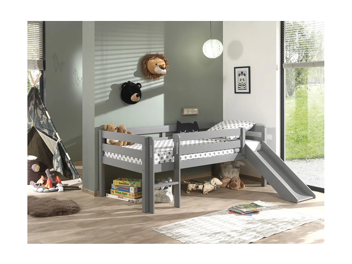 Lit Enfant Surélevé & Toboggan "Pino" 90x200cm Gris