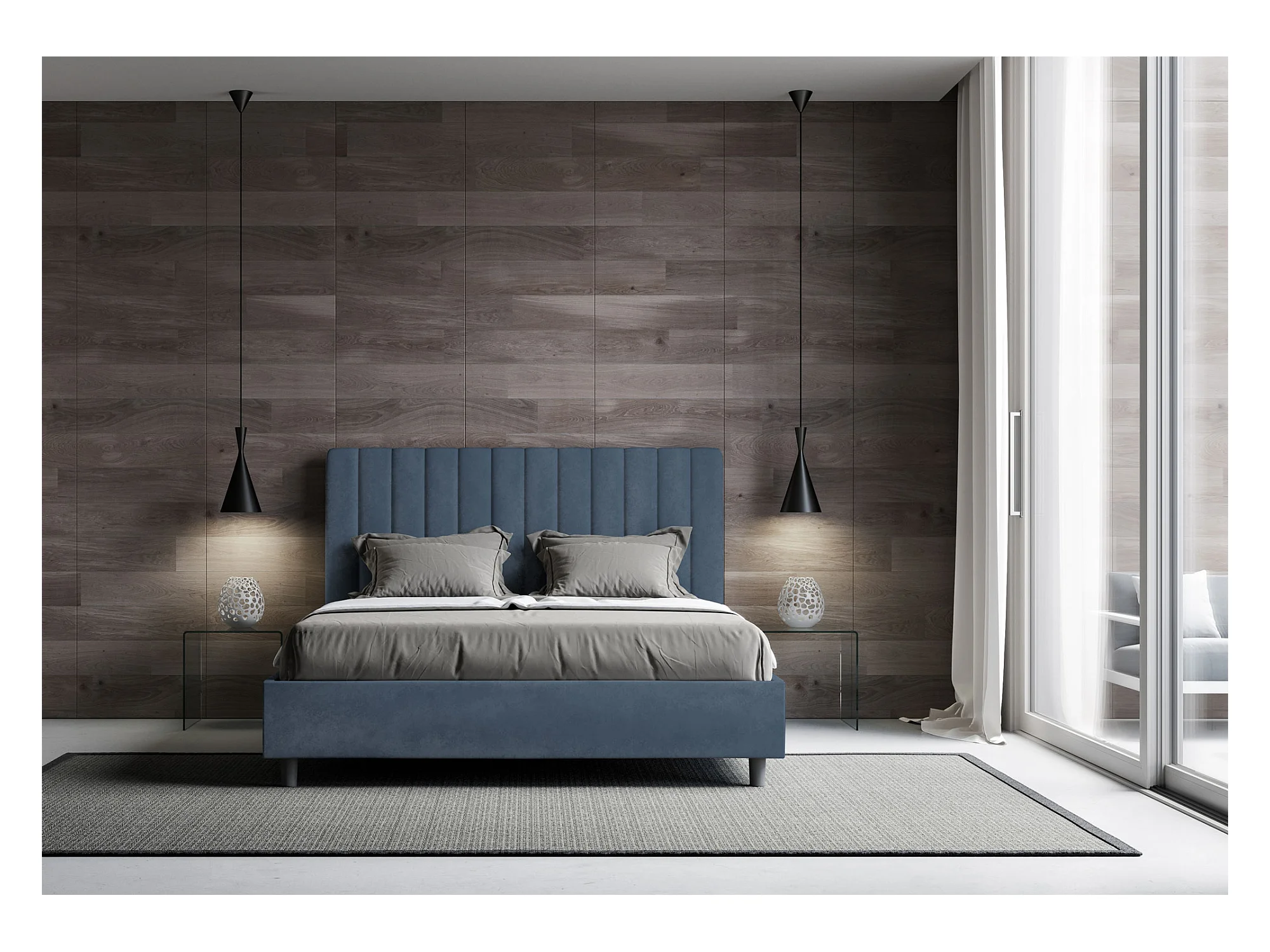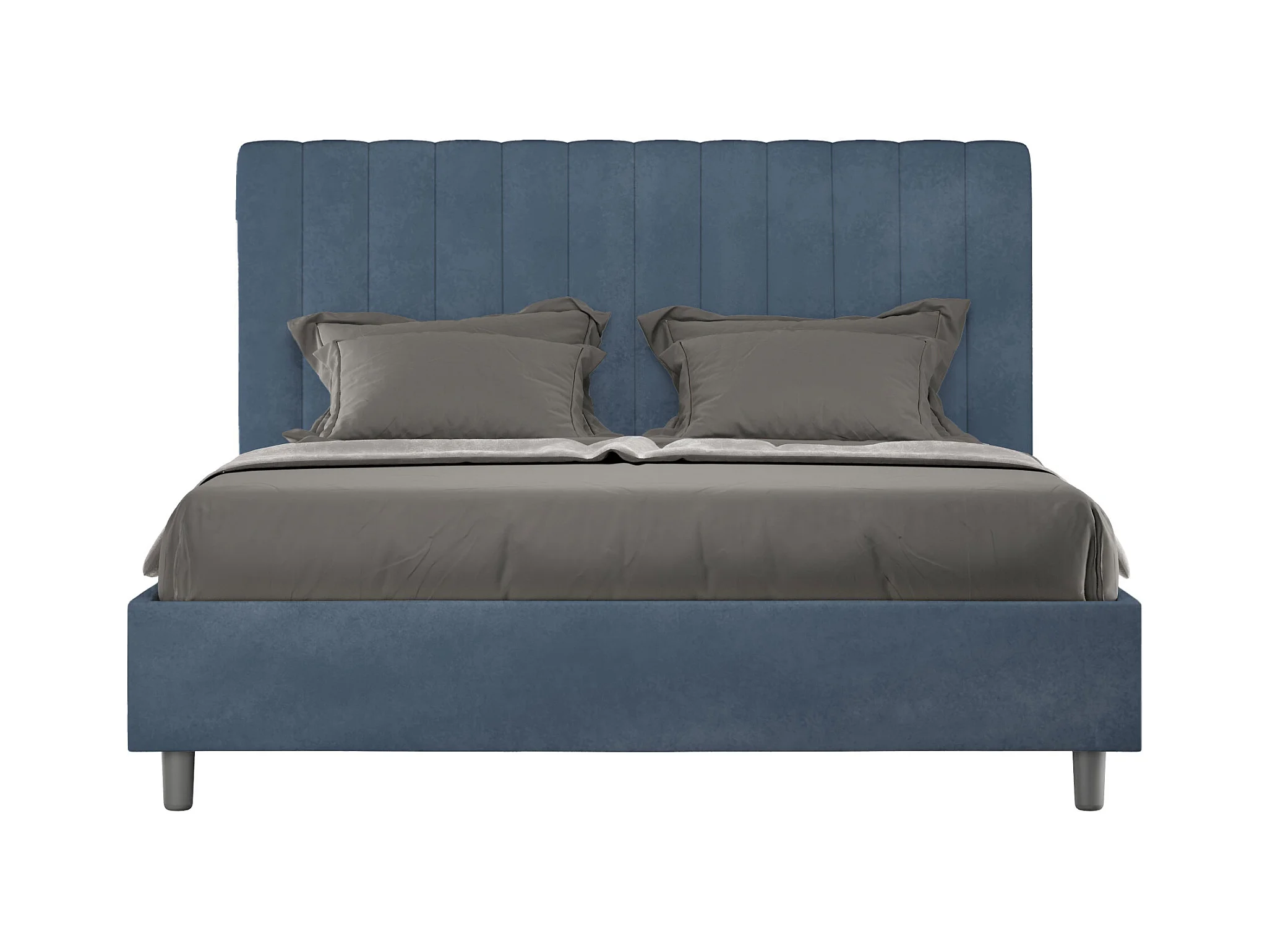 Lit avec sommier rembourré 160x190 microfibre bleu Agueda