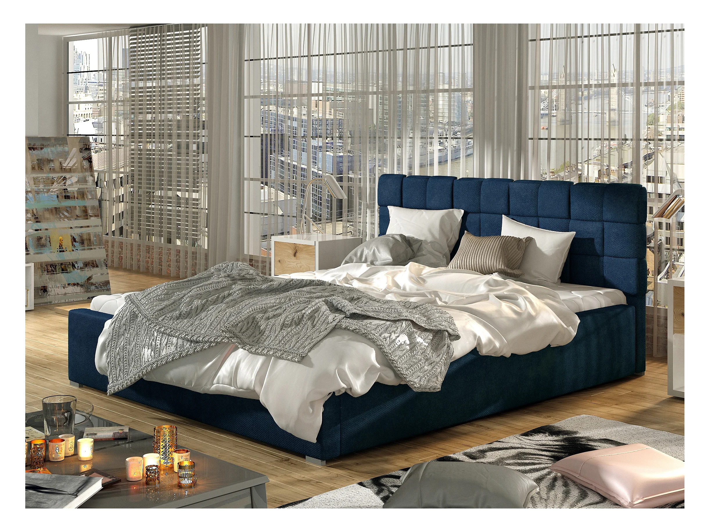 Lit moderne 180x200 capitonné velours bleu Kandy