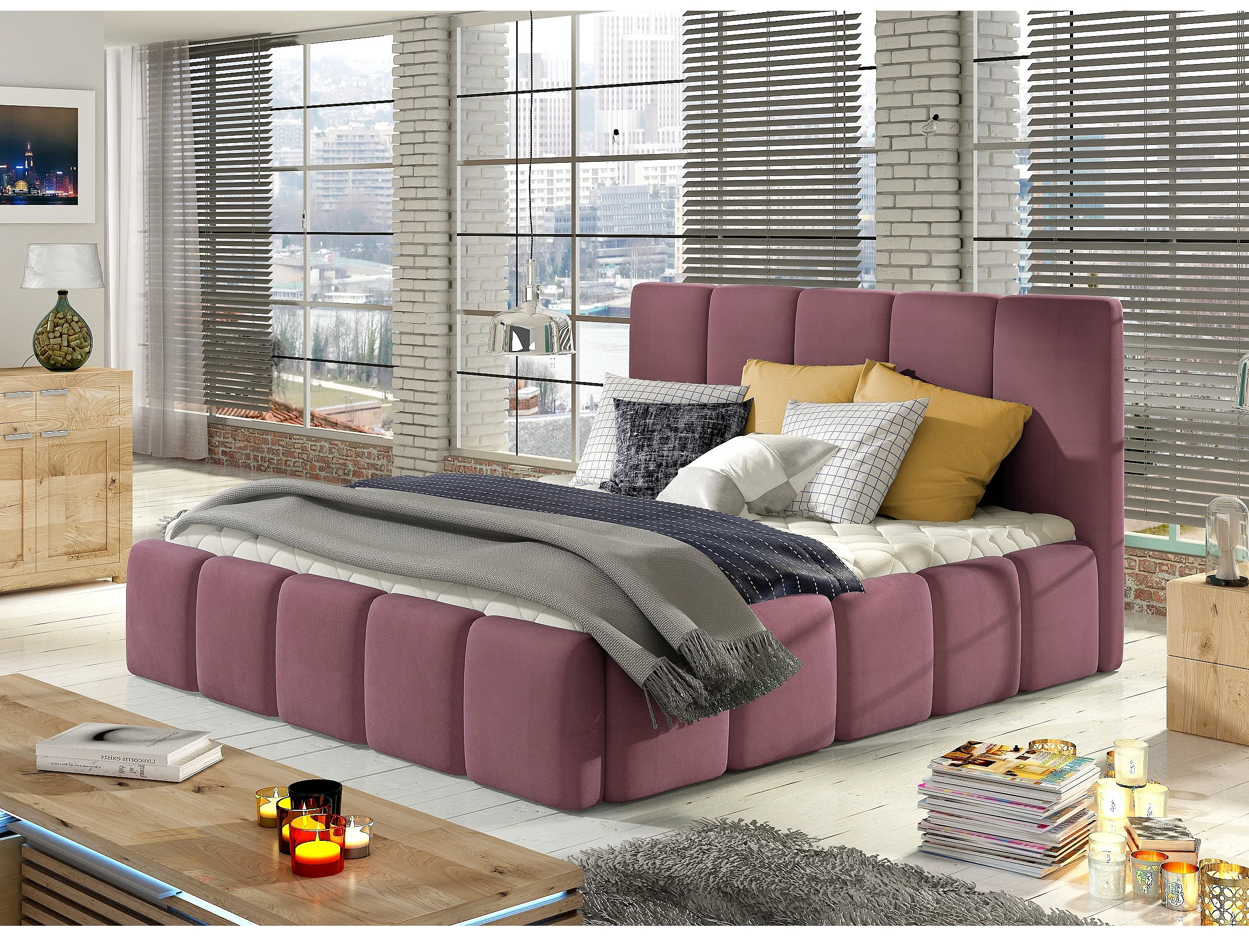 Lit adulte Vika – Velours capitonné-Rose-140x200