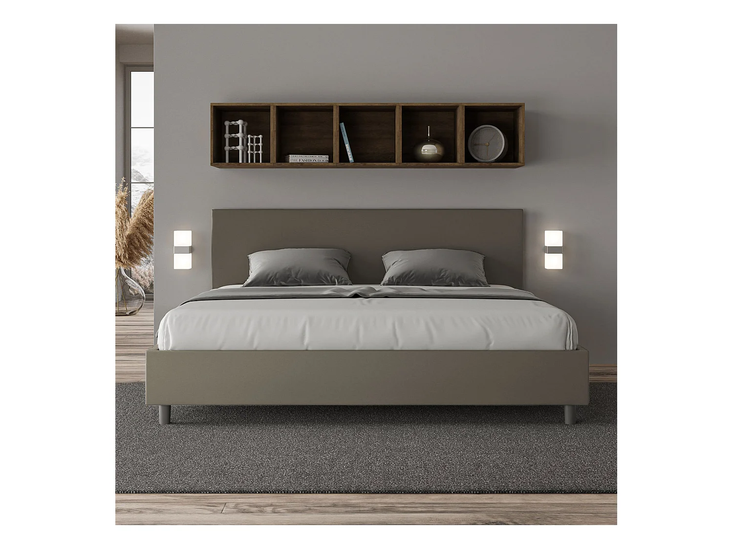 Lit king size sans sommier rembourré 200x200 similicuir cappuccino Adele