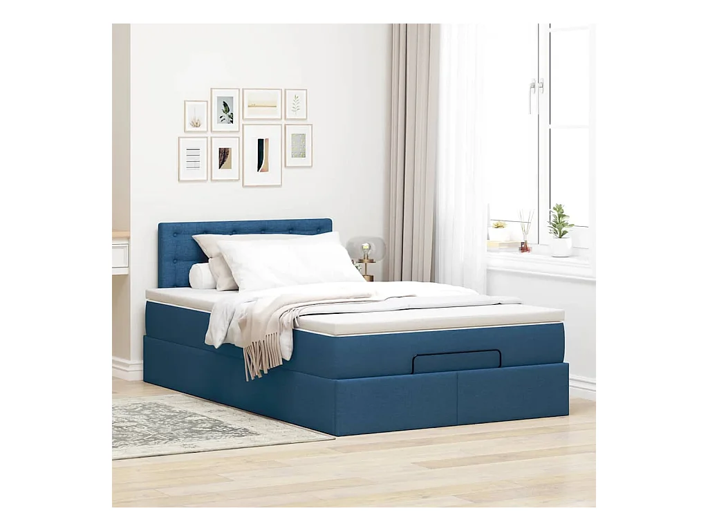 Cadre de lit ottoman avec matelas bleu 120x200 cm tissu