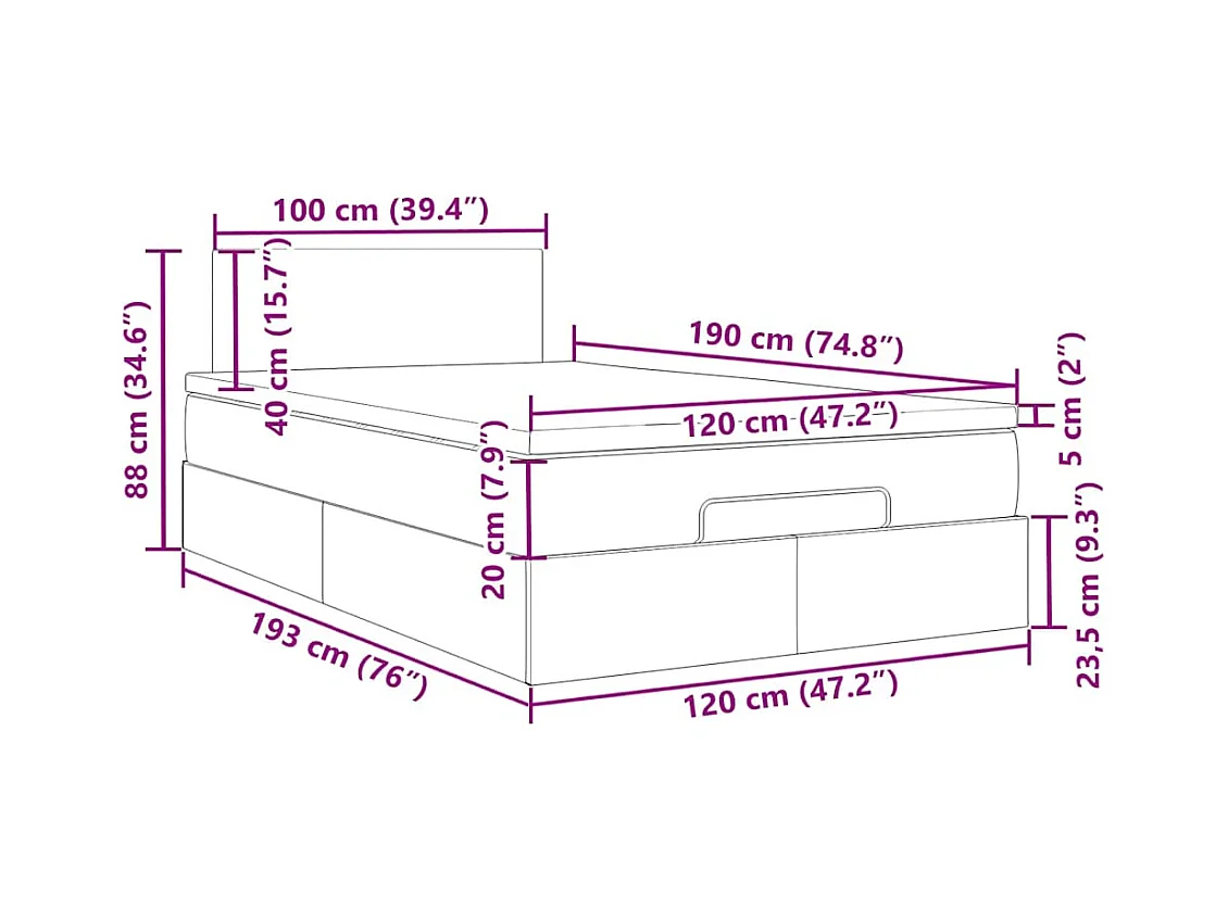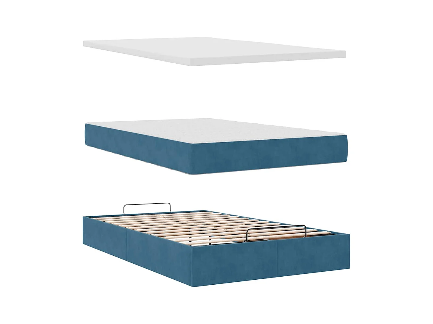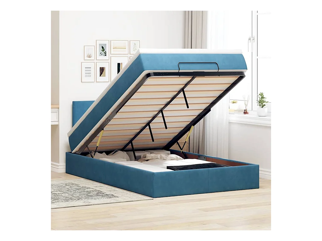 Lit ottoman avec matelas bleu foncé 120x190 cm velours