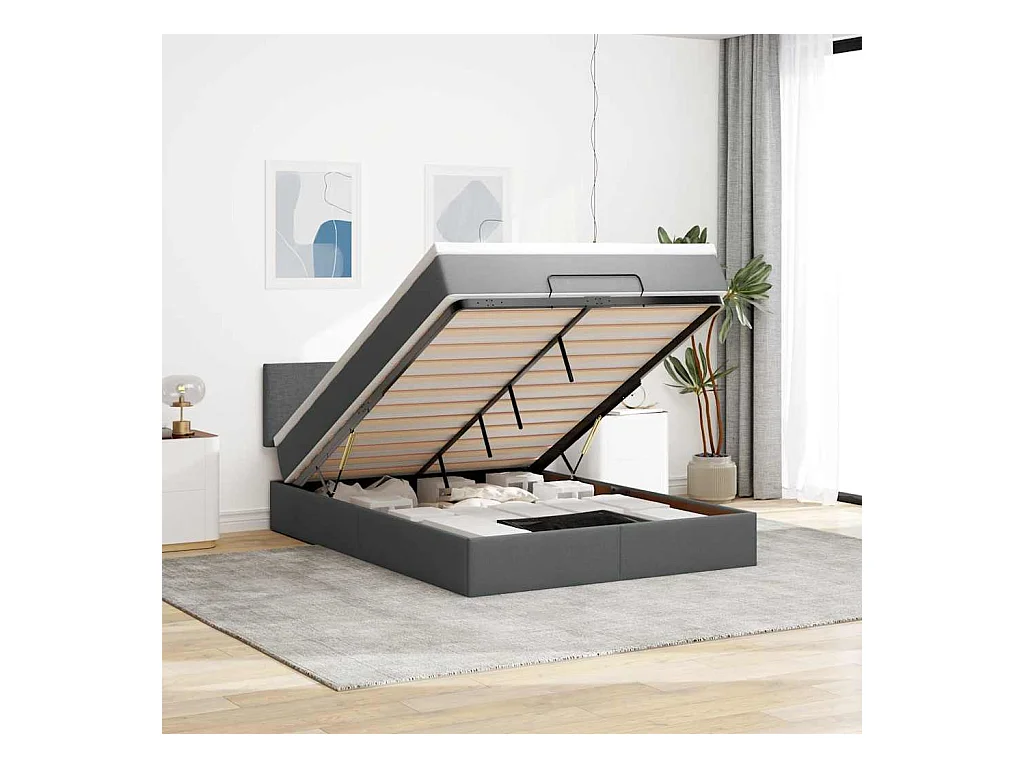 Cadre de lit ottoman avec matelas gris foncé 140x190 cm tissu