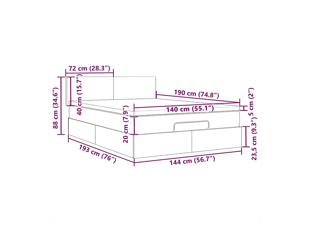Cadre de lit ottoman et matelas gris clair 140x190 cm tissu