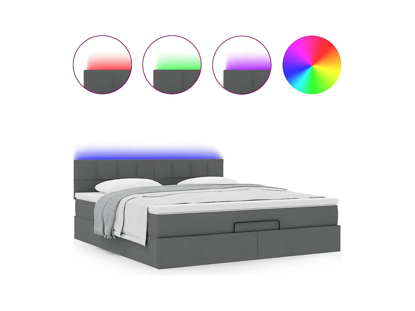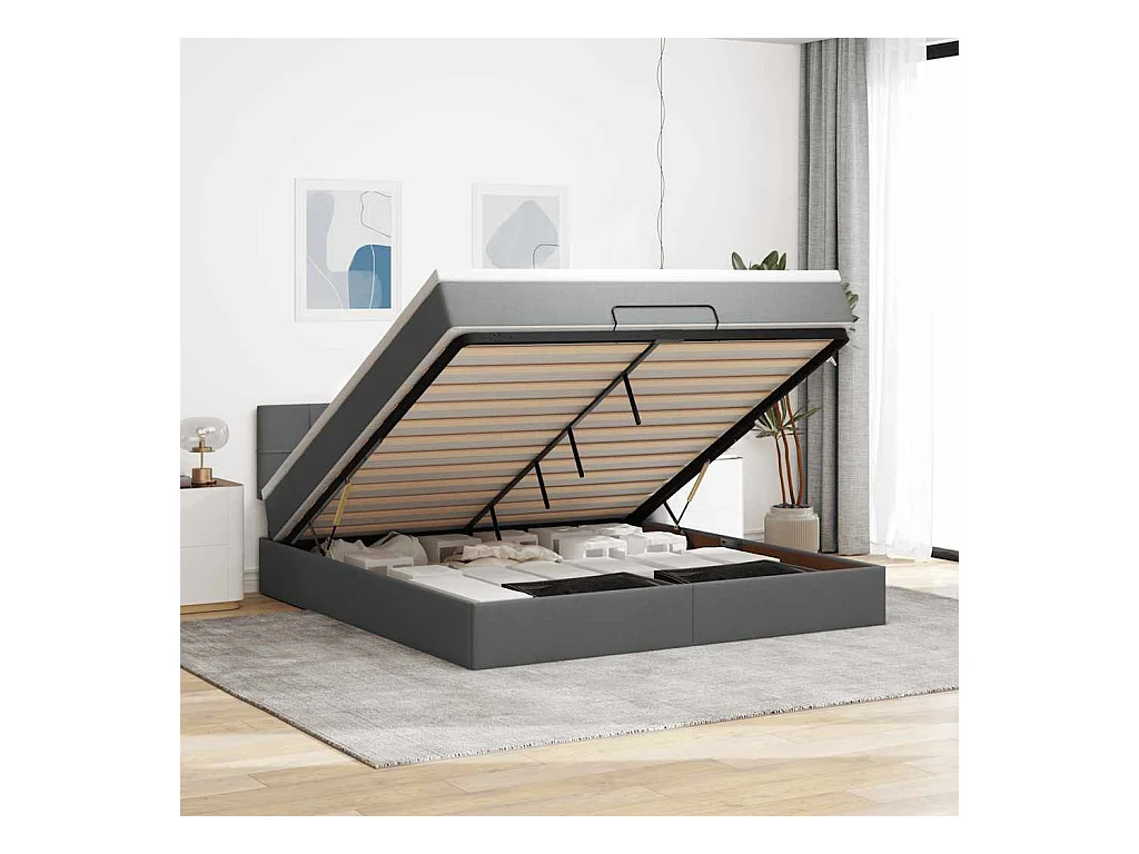 Cadre de lit ottoman avec matelas gris foncé 180x200cm tissu