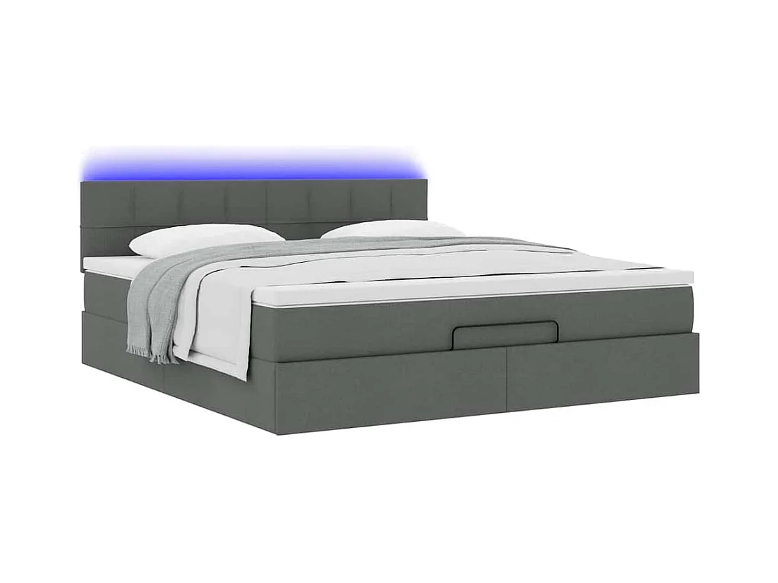 Lit ottoman avec matelas et LED Gris foncé 180x200 cm tissu