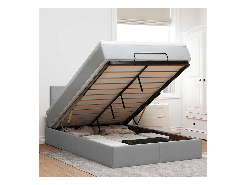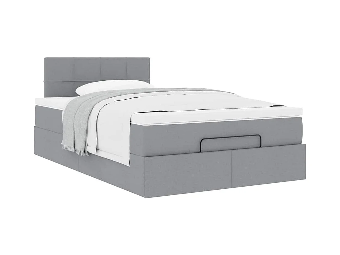 Lit ottoman avec matelas gris clair 120x200 cm tissu