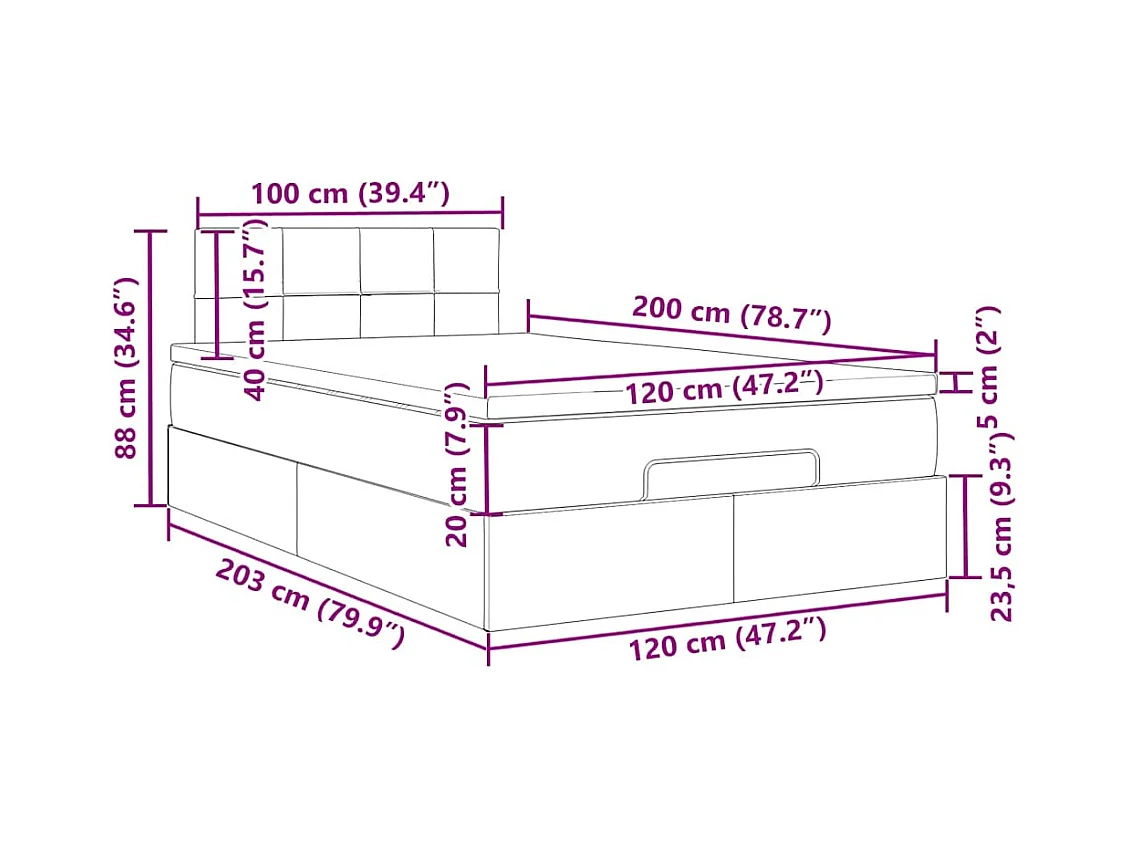 Cadre de lit ottoman et matelas gris foncé 120x200 cm velours